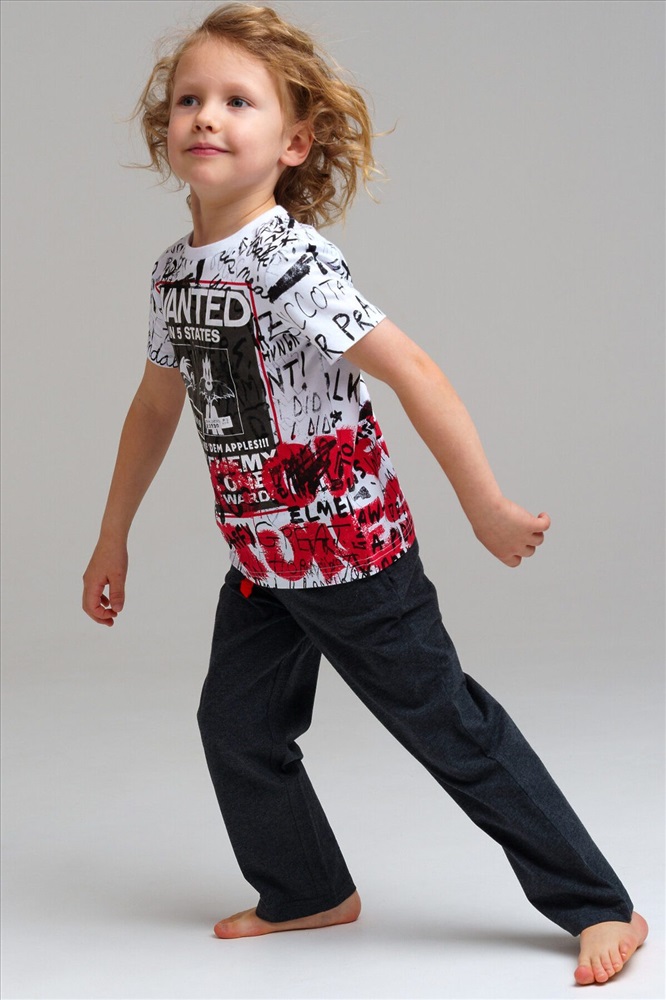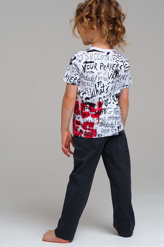 Пижама: футболка, брюки из качественного и приятного на ощупь трикотажа джерси. 100% хлопок. Футболка oversize. Брюки comfort fit с эластичным поясом со шнурком. Карманы в боковых швах.