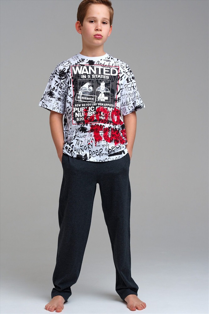ID товара: 978016 Состав: 100% Хлопок Сезон: Демисезон Длина: Полная Фасон: Прямой Рукав: 3/4 Вид застежки: Шнурок Декоративные элементы: Принт Основная ткань: Хлопок Страна бренда: Германия Страна производства: Китай Пижама: футболка, брюки из качественного и приятного на ощупь трикотажа джерси. 100% хлопок. Футболка oversize. Брюки comfort fit с эластичным поясом со шнурком. Карманы в боковых швах. Комментарии к товару