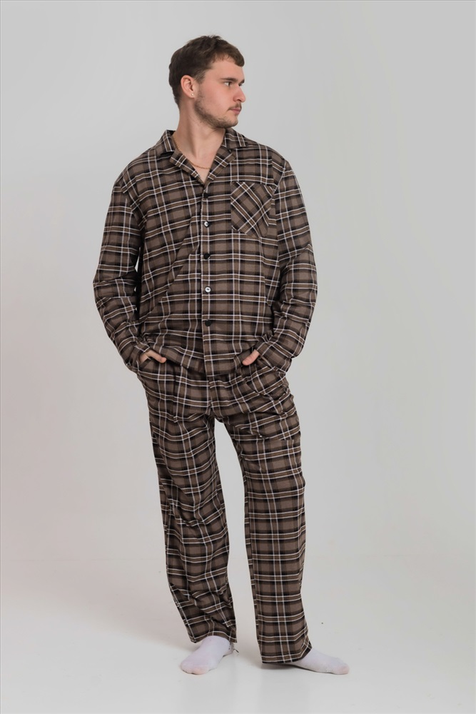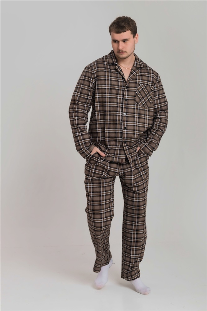 Вид верха комплекта: Рубашка Вид низа комплекта: Брюки Вид ткани: Кулирка Сезон: Всесезонный Состав: Хлопок 100% Цвет Номенклатуры: коричневый/синий
