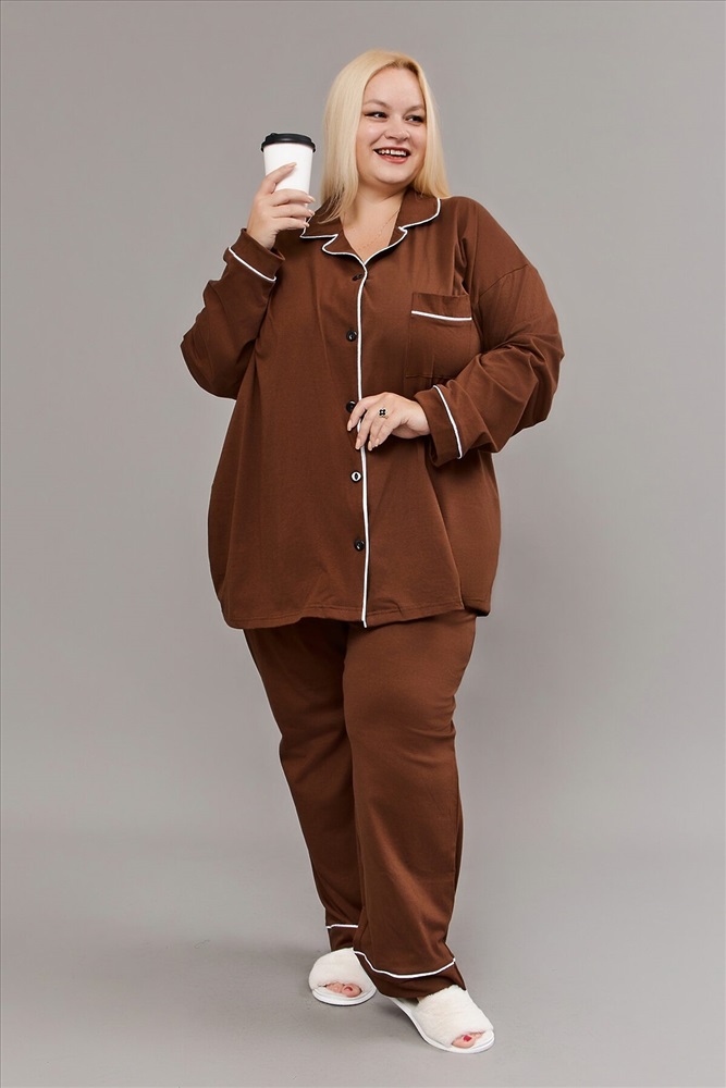 Представляем вам уютный и стильный набор пижамы больших размеров от ВРазмере, созданный для комфортного отдыха и сна. Этот теплый и мягкий комплект станет вашим любимым выбором для прохладных осенних вечеров. Пижама выполнена из 100% хлопка, что гарантирует приятные тактильные ощущения и заботу о вашей коже. Натуральные материалы обеспечат вам комфорт и уют в течение всего дня. Утепленная модель идеально подойдет для прохладной погоды, а легкий трикотаж подарит ощущение невесомости. В наборе вы найдете прямые однотонные штанишки с высокой посадкой и удобной резинкой, а также просторную рубашку с длинными рукавами. Классический дизайн без рисунка подчеркнет вашу элегантность, а свободный крой обеспечит максимальную свободу движений. Эта пижама станет прекрасным подарком на Рождество для любимых женщин, а также идеальным вариантом для дома и сна в холодное время года.