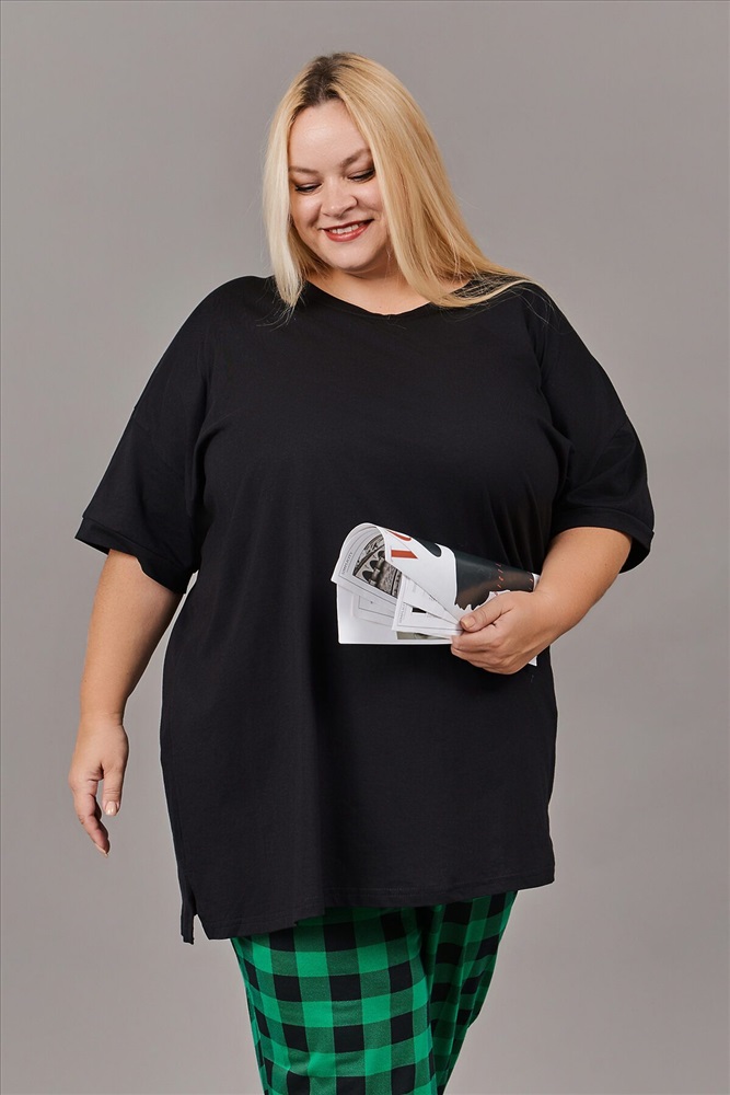 Представляем вам уютный и стильный новогодний набор пижаму женскую больших размеров с брюками, созданную специально для женщин, которые ценят комфорт, красоту и заботу о себе. Эта пижама в красную клетку не просто одежда для сна, а настоящий символ уюта и гармонии. Мы знаем, что при выборе одежды больших размеров особенно важно, чтобы каждая деталь была продумана: футболка должна закрывать живот, брюки не должны пережимать и стягивать, ткань обязана дышать и дарить свободу движений. Именно поэтому мы создали пижаму женскую больших размеров с штанами, которая отвечает всем этим требованиям. Футболка удлиненная, выполнена из 100% хлопка. Она мягко ложится по фигуре, скрывает живот, не обтягивает и позволяет чувствовать себя уверенно. Рукава закрывают локти, что особенно важно для женщин с полными руками ничего лишнего, только комфорт и аккуратный силуэт. Брюки просторные, на мягкой резинке, которая не впивается в талию. Они сшиты из натурального хлопкового трикотажа и подходят для бедер до 172 см, что делает модель универсальной. Свободный крой не сковывает движений, а правильная длина позволяет носить их как высоким, так и невысоким женщинам. Плюс практичные карманы маленькая, но очень нужная деталь для дома. Пижама это не только удобство, но и настроение. Яркая клетка создаёт атмосферу праздника, а классический дизайн делает её универсальной и для сна, и для домашних дел, и даже для уютных вечеров в кругу семьи. Мы создаем одежду, которая подчеркивает: полнота это достоинство, а не приговор. Наши модели шьются с учетом особенностей plus size, чтобы каждая женщина чувствовала себя королевой. Размерный ряд от 62 до 76 позволяет подобрать идеальный вариант для любой фигуры. А ухаживать за пижамой очень просто машинная стирка при 40 сохранит форму и яркость надолго. Если вы давно искали пижаму, которая объединяет удобство, стиль и правильный крой для роскошных форм такая пижама станет вашей любимой находкой.