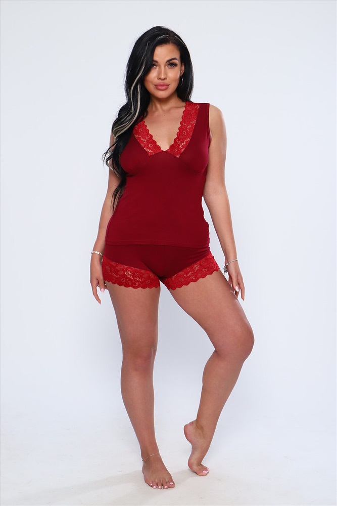 Пижама женская сексуальная с шортами из вискозы.Шортики и майка выполнена из нежной вискозы идеально подчнеркивают фигуру.Майка без рукава по груди сесуальный вырез оформлен кружевом под грудью подрез со складками,шортики по низу с кружевом.в этой пижаме вы будите неотразима .На модели 48 размер. Идеально подойдет к модели 78518.