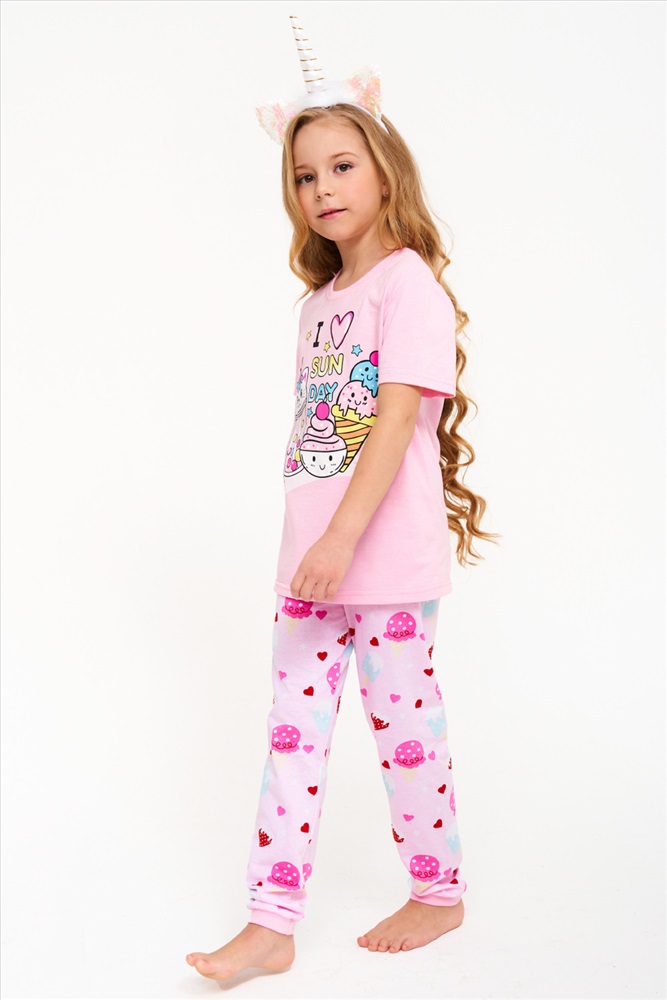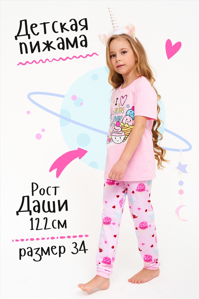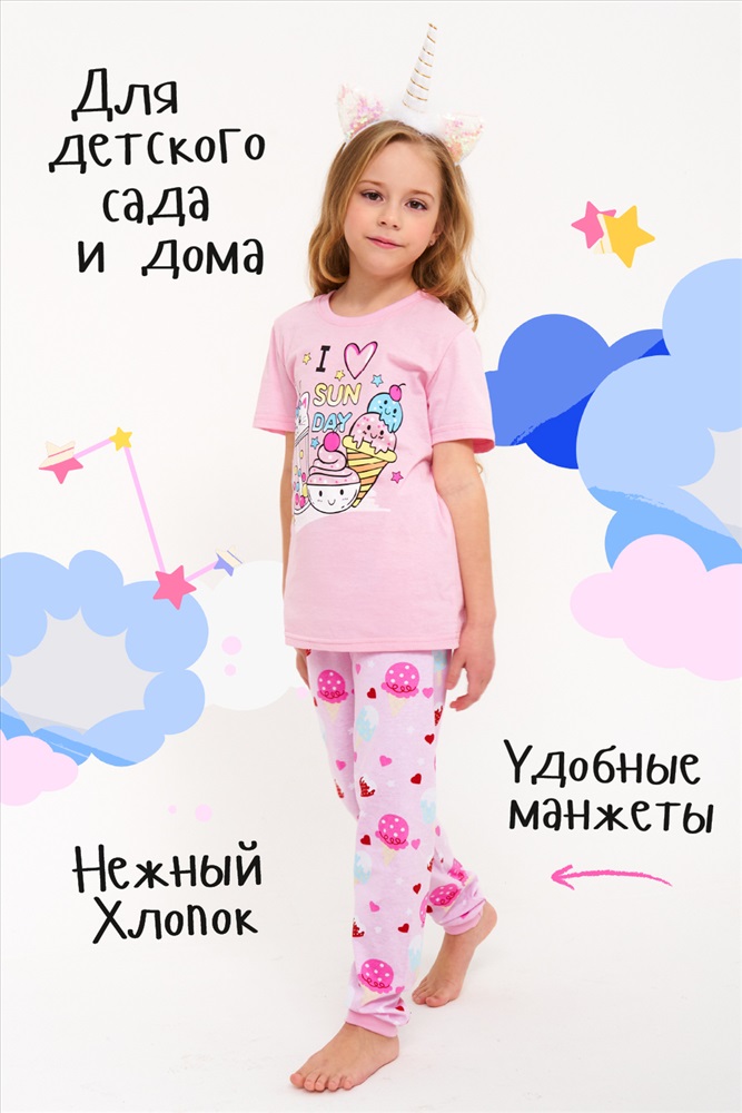 Состав: 100% хлопок Модель: Пижама Сладкий день детская Тип товара: пижама с брюками Бренд: Детский трикотаж 37 Карман: без карманов Материал: кулирка Назначение: для дома Особенности: на резинке Отделка: с печатью Посадка: высокая посадка Рисунок: фуд-принт | разное Рукав: короткий рукав Сезонность: лето | осень | весна | зима Силуэт: прямой Стиль: домашний Застежка: без застежки Детская пижама с брюками из 100% хлопка, яркий и современный принт в розовых тонах Таблица размеров и весаБрюки