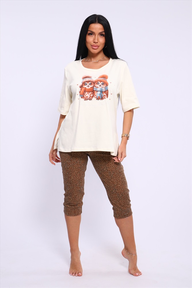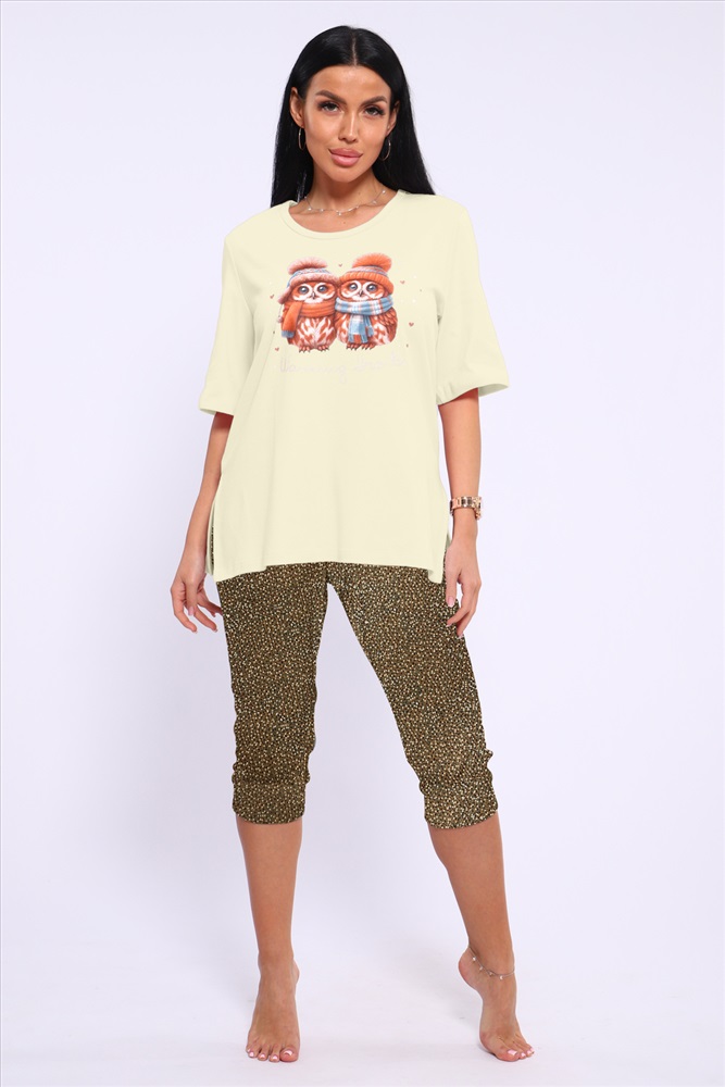 Состав: 100% хлопок Модель: Пижама ТК 386 Тип товара: пижама с бриджами Материал: интерлок | интерлок Бренд: NINEL Карман: боковые Назначение: для дома Особенности: на резинке Отделка: с карманами | с печатью Посадка: средняя посадка Рисунок: цветы | зверюшки Рукав: короткий рукав | рукав 3/4 Сезонность: лето | осень | весна | зима Силуэт: полуприлегающий Стиль: домашний Воротник: без воротника Застежка: без застежки Уютная пижама свободного кроя из 100% хлопка. Футболка с втачным рукавом и разрезами по бокам, на полочке декоративная, глянцевая печать в стиле шелкографии с добавлением глиттера. Бриджи на резинке с карманами и манжетами. Таблица размеров и весафутболка