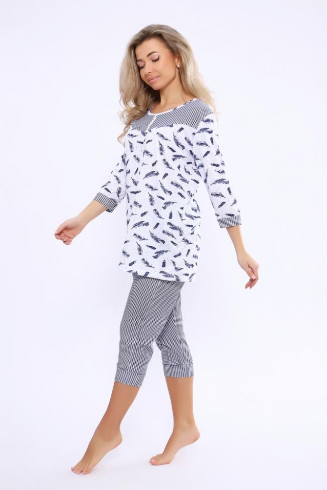 Пижама женская . Натуральный хлопковый трикотаж, белоземельный, модель свободного удобного покроя.