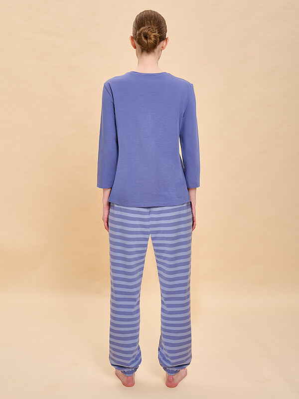 Состав: верх: 95%хлопок 5%эластан, низ: 95%хлопок 5%эластан Костюм пижамный женский. В составе ткани преобладает высококачественный хлопок — комплект для сна мягкий, гипоаллергенный и воздухопроницаемый. В хлопковой пижаме вам будет тепло и уютно во время сна. Эластан помогает модели надолго сохранить первоначальную форму. Джемпер и брюки умеренного объёма, плечо немного спущено, рукава широкие и свободные — в пижаме очень удобно спать. В поясе и по низу брюк мягкие и широкие резинки — не перекручиваются и не давят. Отделка горловины из эластичной рибаны — она не растягивается, пижаму удобно надевать и снимать. Хлопковая пижама украшена милым, «няшным» принтом в виде забавного лемура, надписи переводятся: «креативные вещи», «я просто хочу выпить кофе и спать». Брюки в горизонтальную полоску. Пижамный костюм неприхотлив в уходе. Принт эластичный и стойкий, хорошо переносят частые стирки. Пижама женская с брюками подходит как для сна, так и просто для отдыха дома, пижамной вечеринки. Помните о правильном уходе за изделием: рекомендуется стирать при температуре не выше 30 °C, без предварительного замачивания, с изнанки. Это поможет сохранить качество и цвет пижамы на длительное время. Не забывайте о выборе правильного размера. Используйте таблицу размеров на фотографии, чтобы выбрать подходящий для себя вариант. Обратите внимание, что цвет товара на экране вашего устройства может отличаться от реального. Комментарии к товару