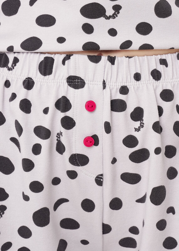 Пижама для дома из хлопкового трикотажного полотна с эластаном.Майка прямого силуэта, среднее плечо.По горловине и пройме окантовка с застилом, внизу нашивка.Короткие шорты с притачным поясом на внутренней резинке,спереди имитация гульфика с пуговицами.