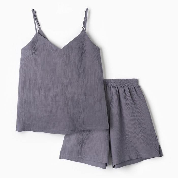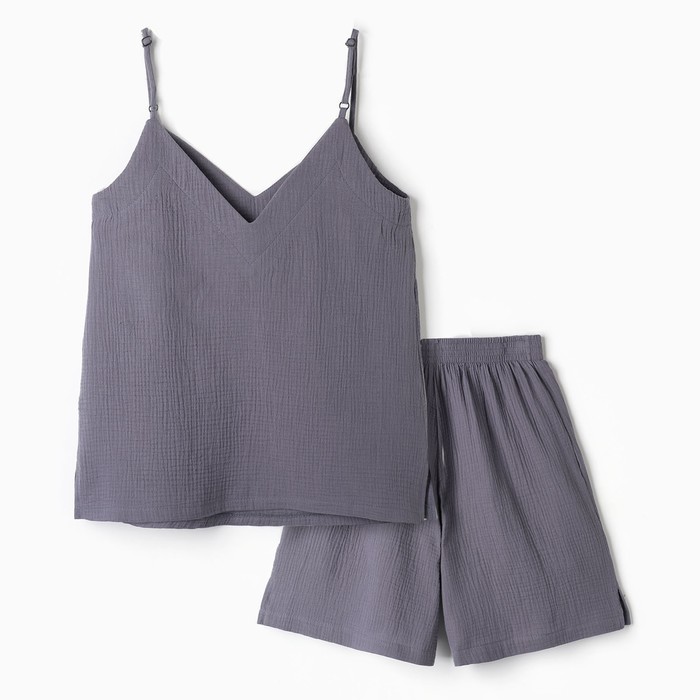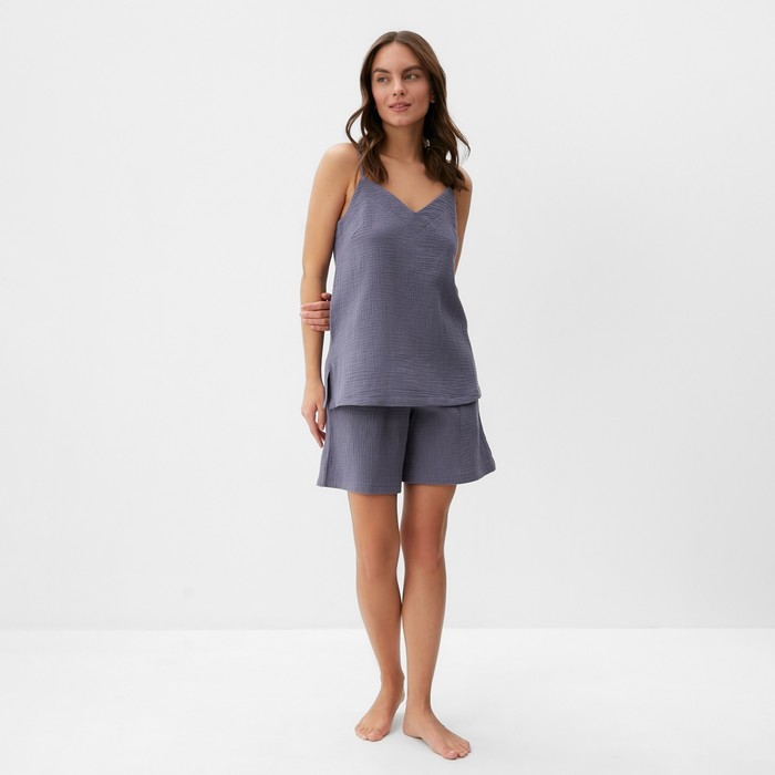 Габариты: 28 x 26 x 2 Страна: Россия В боксе: 40 комплект Состав: Хлопок 100% Материалы: хлопок Фасовка: по 1 комплект Индивидуальная упаковка: Пакет (БОПП, полиэтилен, ПВХ, дой-пак) Сертификат: ЕАС Цвет: Серый Для кого: Для женщины Ткань: Муслин Плотность, г/м²: 120 Рост, см: 165 - 170 Рост модели на фото, см: 167 Вид застёжки: Без застёжки Тематика: Однотонная Длина рукава: Без рукава Вырез горловины: На бретельках Декоративные элементы: Без элементов Покрой: Прямой Тип карманов: Без карманов Тип рукава: Без рукава Рекомендации по уходу: Деликатная стирка при 30 °С, Не отбеливать, Глажка при 110 °С, Барабанная сушка при низкой температуре Тип посадки: Средняя Состав ткани: Хлопок С карманом: Да Обхват талии, см: 95.6 Длина изделия по спинке, см: 65.7 Обхват груди, см: 85.8 Обхват бёдер, см: 105.8 Параметры модели на фото (ОГ-ОТ-ОБ): 86-65-92 Серый комплект для сна и отдыха из майки на бретельках и шортов – это универсальный выбор для женщин, которые ценят комфорт и стиль дома. Изготовленный из муслина, этот костюм обеспечивает лёгкость, дышащие свойства и комфорт на протяжении всего дня. Преимущества