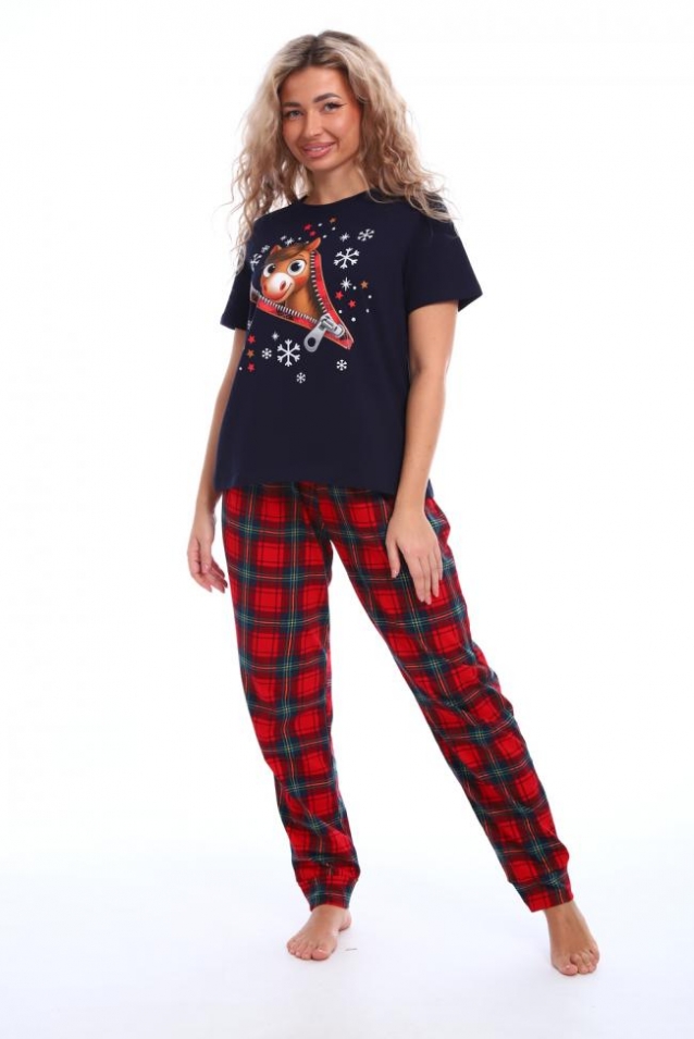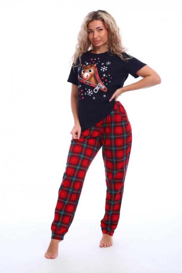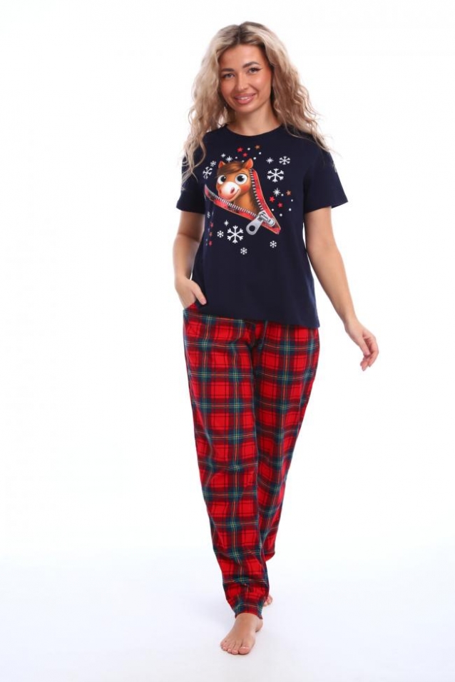 Мы рады представить тебе милую и уютную одежду для сна и отдыха, которая станет неотъемлемой частью твоего домашнего комфорта в Новый год и в самый романтичный день года День святого Валентина! Комплект состоит из белой футболки с забавным принтом лося и красных штанов в клетку. Этот легкий костюм из мягкого хлопка подарит незабываемое ощущение нежности и уюта в холодные зимние дни, позволяя тебе чувствовать себя комфортно и стильно. При разработке этого комплекта мы позаботились о широком размерном ряде, включая большие размеры, чтобы каждая женщина могла порадовать себя или любимых. Благодаря мягкой резинке он подойдет даже беременным. Мы понимаем, что выбор одежды для дома важен не только с точки зрения стиля, но и удобства, особенно когда речь идет о праздниках, полных любви и романтики. Подготовьтесь к празднованию Дня всех влюбленных с нашей пижамой, созданной для создания романтической атмосферы. Домашний костюм идеально подойдет для уютных домашних вечеров, пижамных вечеринок и празднования Дня всех влюбленных в кругу близких и дорогих людей. Двойка с брюками обеспечивают свободу движений и подходит для долгих зимних вечеров, когда можно устроить романтический вечер с любимым партнером. Повседневный стиль одежды на каждый день становится все популярнее среди современных девушек благодаря своей универсальности. Мягкость материала поможет расслабиться после долгого рабочего дня и насладиться временем, проведенным с любимыми, без чувства скованности. Это идеальное решение для тех, кто ценит практичность и уют в одежде для дома. Этот трикотажный комплект с рисунком символа года станет отличным подарком для себя и своих дорогих людей (дочки, мамы, подруги) на день рождения и конечно же, на День любви. Погрузитесь в атмосферу праздника и нежности с нашей женской новогодней пижамой!