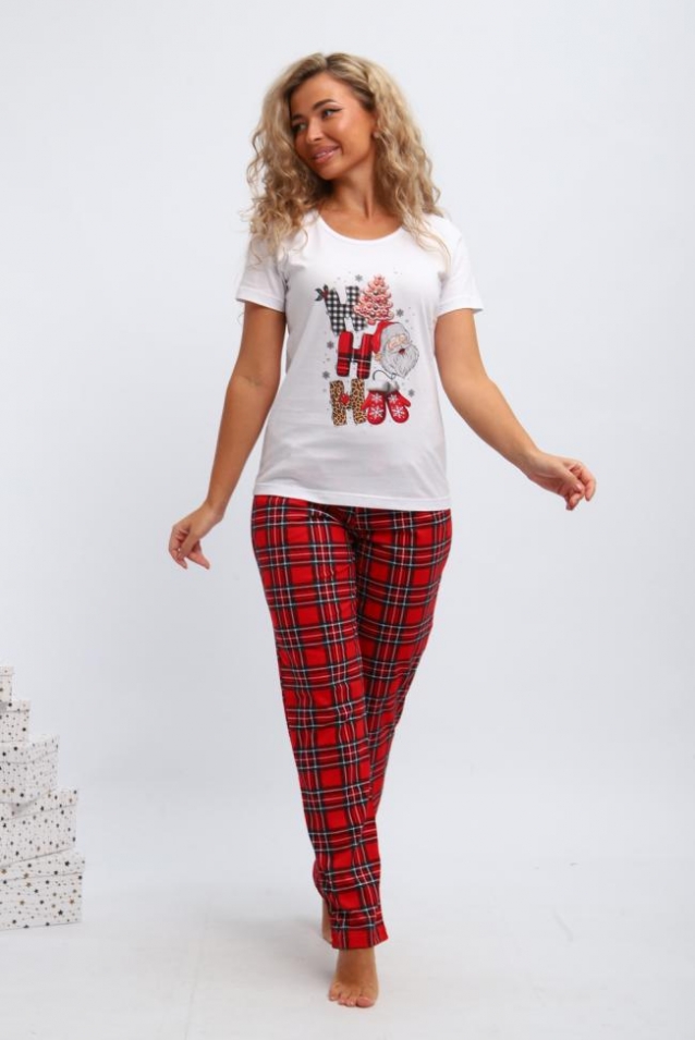 Пижама женская П154 новый год (Красный,белый)