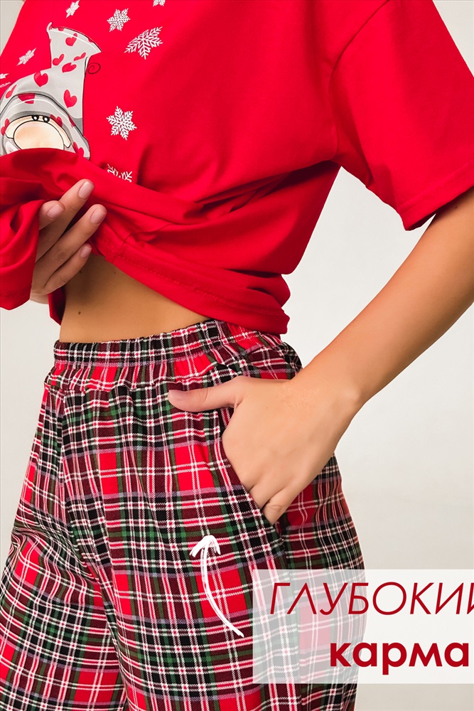 Состав: 100% хлопок Модель: Пижама женская с брюками гномы красный Тип товара: пижама с брюками Материал: кулирка | кулирка Бренд: Iv-trik-stail Карман: боковые Назначение: для дома Особенности: на резинке Отделка: с карманами | с печатью Посадка: средняя посадка Рейтинг: Рейтинг 4 и выше Рисунок: клетка | новогодний | разное Рукав: короткий рукав Сезонность: осень | весна | зима Силуэт: прямой | свободный Стиль: домашний Воротник: без воротника Застежка: без застежки Женская пижама с брюками - идеальный выбор для комфортного отдыха дома. Этот домашний костюм сочетает в себе уют, качество и стиль, делая его незаменимой частью гардероба каждой женщины. Легкая пижама выполнена из 100% хлопка - натурального, дышащего материала, который обеспечивает оптимальную температуру тела во время сна. Хлопковая ткань из Турции приятна на ощупь и не вызывает раздражения. Брюки в клетку и полоску придают пижаме женственность и элегантность, а футболка дополняет образ своим оверсайз кроем и стильным принтом. Такой домашний костюм не только удобен в повседневной жизни, но и выглядит модно и аккуратно. Пижама для сна представлена в больших размерах, что позволяет каждой женщине подобрать оптимальный вариант посадки, подходит для полных и стройных женщин, высокого и невысокого роста. Этот домашний комплект может быть использован в повседневной жизни для дома или даже во время беременности. Удобный пояс на широкой резинке обеспечивает надежную фиксацию, не стесняя движения. Мягкая ткань не сковывает движений, обеспечивая ощущение свободы и комфорта на протяжении всей ночи. Модный комплект это отличный подарок на любой праздник маме, бабушке, сестре, дочке, подруги, коллеге, на выписку, на день рождения, Новый год, Рождество, 8 марта. Костюм идёт в размер и для вашего удобства мы разработали размерную сетку, она именно для нашей модели. Посмотреть её можно пролистав фото (второй слайд). А те, кто любит стиль oversize можно выбрать на размер больше. Женская пижама с брюками больших размеров - это не просто одежда для дома, это идеальное сочетание стиля, комфорта и качества. Почувствуйте себя уютно и модно даже во время отдыха! Пижама женская не линяет и не теряет форму, если соблюдать правила ухода. Купить пижаму женскую недорого на Натали брэнда Iv-trik-stail ваш правильный выбор, желаем приятных покупок! Таблица размеров и веса