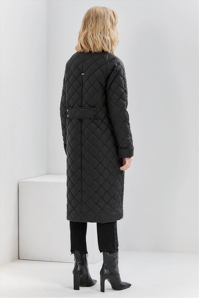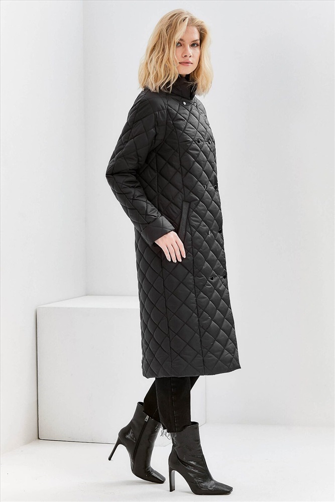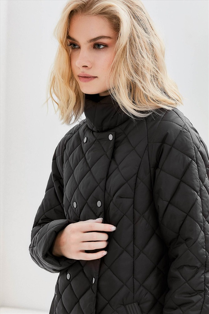 Классический стеганный плащ прямого силуэта с высокой стойкой. По спинке располагается пата, создающая эффект приталенности. Рукав покроя реглан с отворотом по низу. Удобные карманы на листочках. Изделие двубортное, застегивается на кнопки и центральную молнию. Ткань JS-30, утепление ORSOTERM (от +5°C до +15°C). Размерный ряд: 42- 56. Длина изделия- 108см., длина рукава-65см. Изделие выполнено цветах: черный, темно-пурпурный.