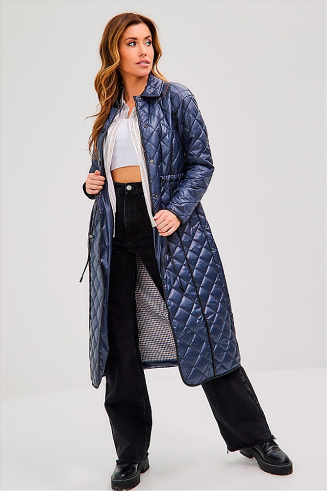 ID товара: 804597 Состав: 100% Полиэстер Сезон: Осень/Зима Длина: 120 см Фасон: Прямой Рукав: Длинные, 64 см Вид застежки: Кнопки Тип карманов: Прорезные Декоративные элементы: Кулиска Утеплитель: Орсотерм, 100 гр Стиль: Повседневный Реком. темп. режим: до +10ºС Страна бренда: Россия Страна производства: Россия Стильный стеганый однобортный плащ прямого силуэта с кантами и утяжкой на уровне талии. Застежка на кнопках. Кулиска выполнена из эко-кожи. Рукав со спущенным плечом. Имеются два кармана с листочками на кнопках. Есть внутренний карман. Ткань изделия обработана качественной водоотталкивающей пропиткой. Утепление нового поколения ORSOTERM 100 гр., рекомендуемый температурный режим от +10°C до +18°C. Длина изделия: 120 см. Длина рукава: 64 см. Комментарии к товару