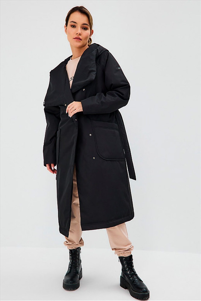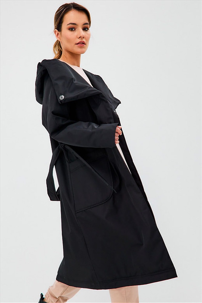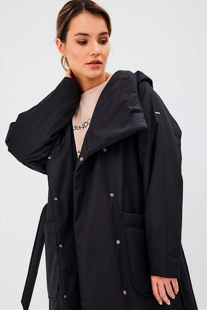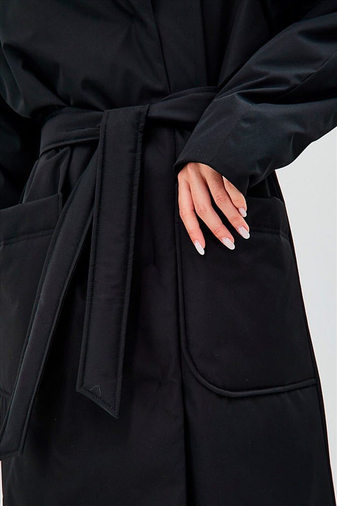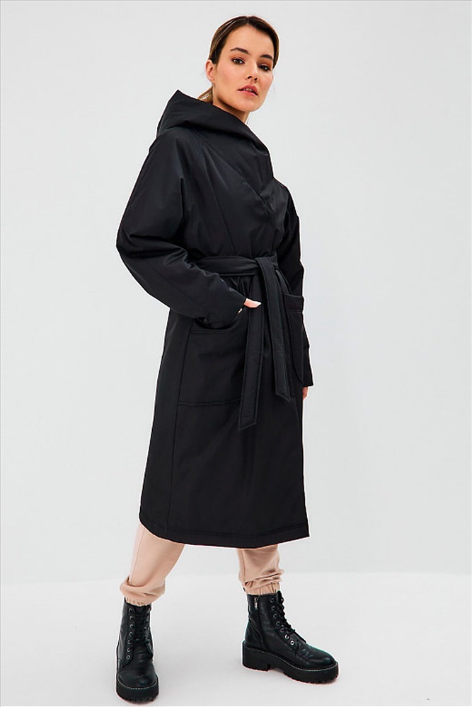 Утепленный плащ прямого силуэта с капюшоном и застежкой на потайные кнопки. В изделии имеются два накладных кармана с удобным входом и один внутренний. В комплекте есть пояс из основного материала. Ткань - плащевая с водоотталкивающей пропиткой. Утепление - синтепон ОRSOTERM 100 гр. Рекомендуемый температурный режим (от +10°C до +18°C). Длина изделия - 112 см. Длина рукава - 66 см.