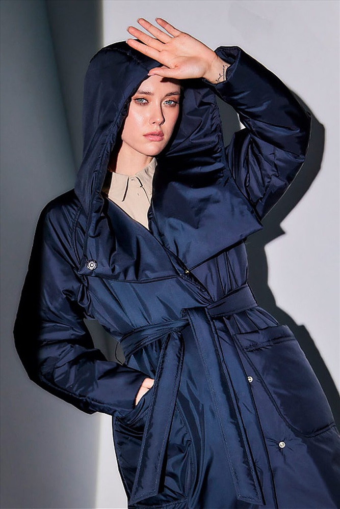 Утепленный плащ прямого силуэта с капюшоном и застежкой на потайные кнопки. В изделии имеются два накладных кармана с удобным входом и один внутренний. В комплекте есть пояс из основного материала. Ткань - плащевая с водоотталкивающей пропиткой. Утепление - синтепон ОRSOTERM 100 гр. Рекомендуемый температурный режим (от +10°C до +18°C). Длина изделия - 112 см. Длина рукава - 66 см.