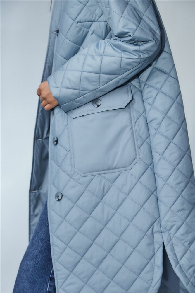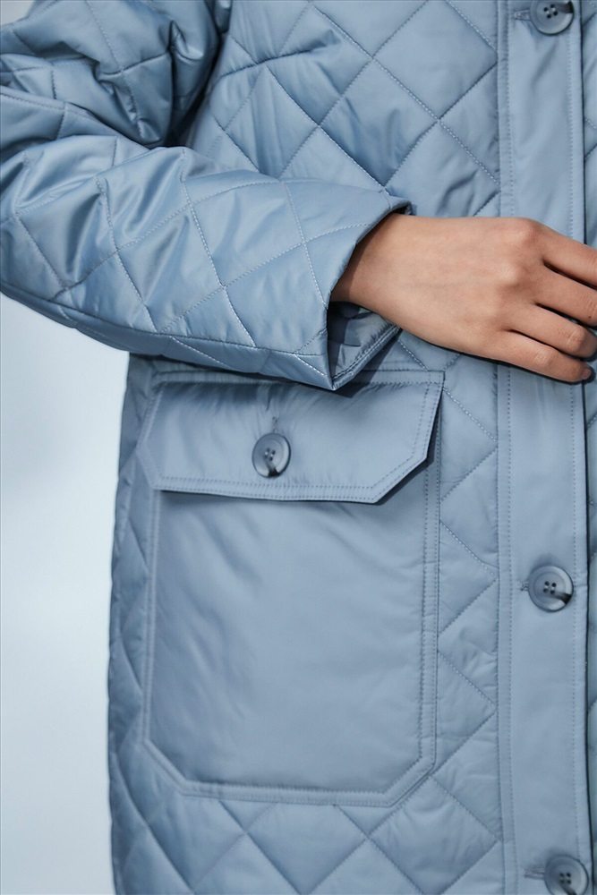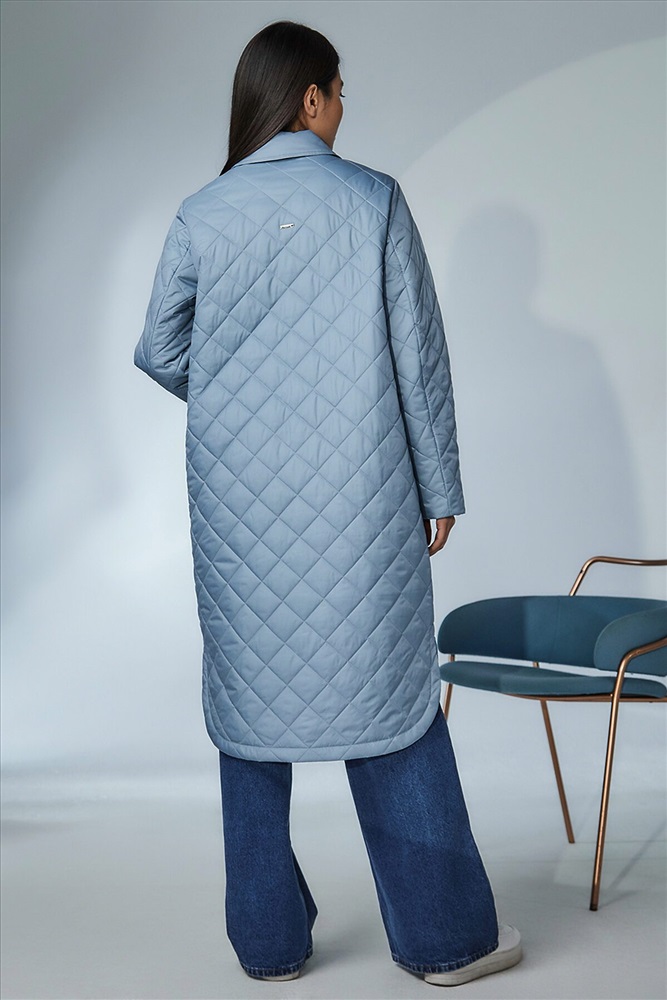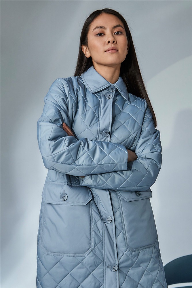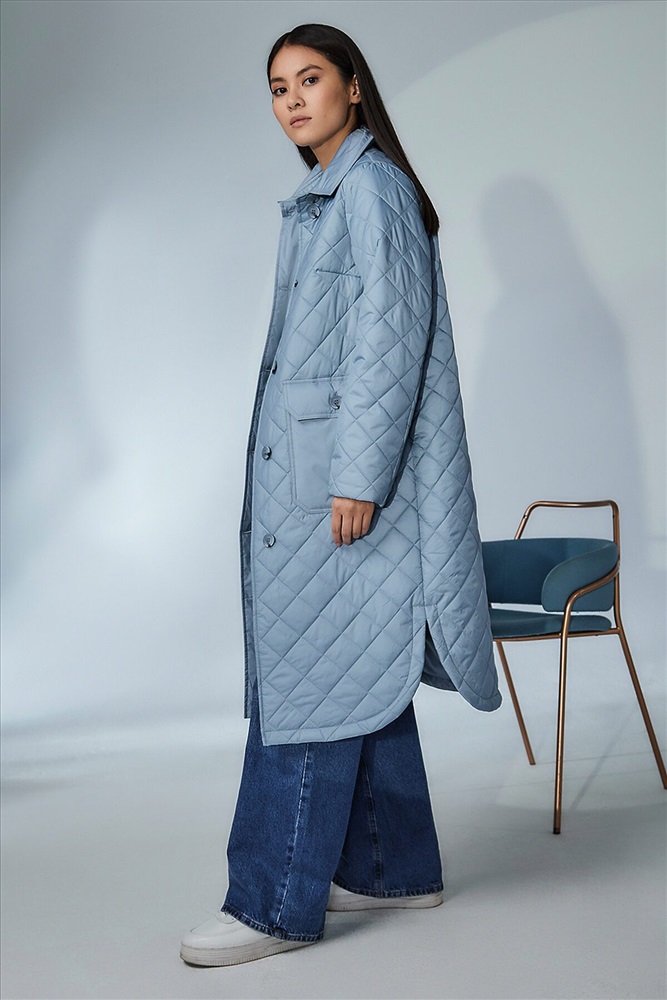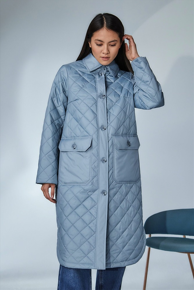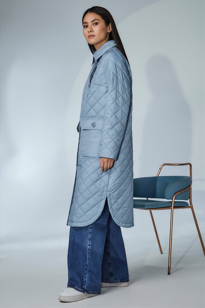 Утепленный плащ-рубашка прямого силуэта с втачным рукавом. В модели имеются два функциональных накладных кармана с клапанами на пуговицах, а также один внутренний карман. Ткань - плащевая с водоотталкивающей пропиткой, расстеганная ромбом. Утепление нового поколения ORSOTHERM 100 гр. Рекомендуемый температурный режим от +10°C до +18°C. Длина изделия: 110 см. Длина рукава: 64 см.