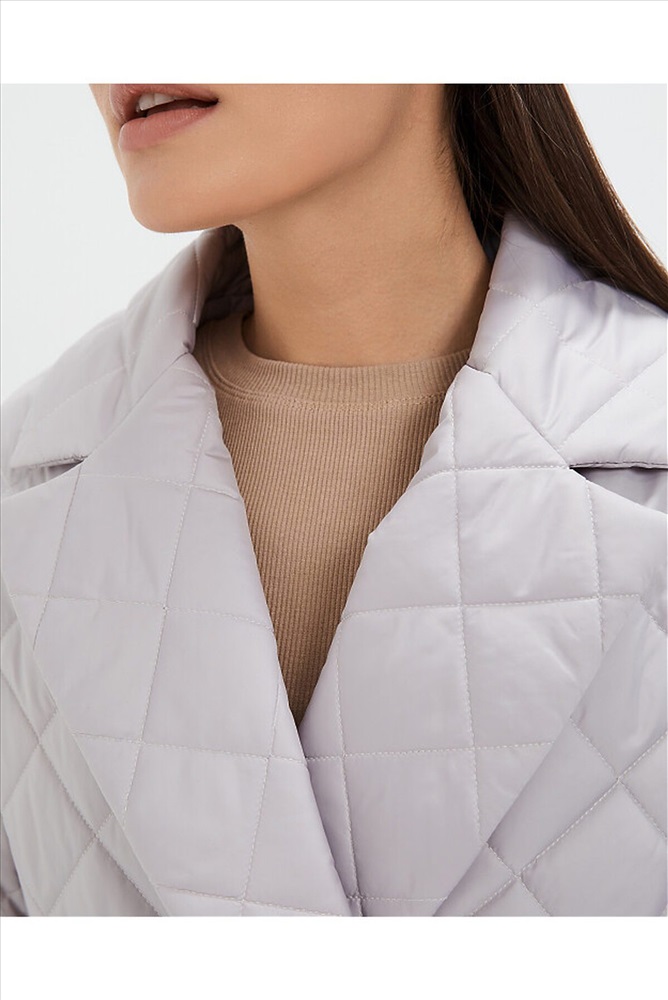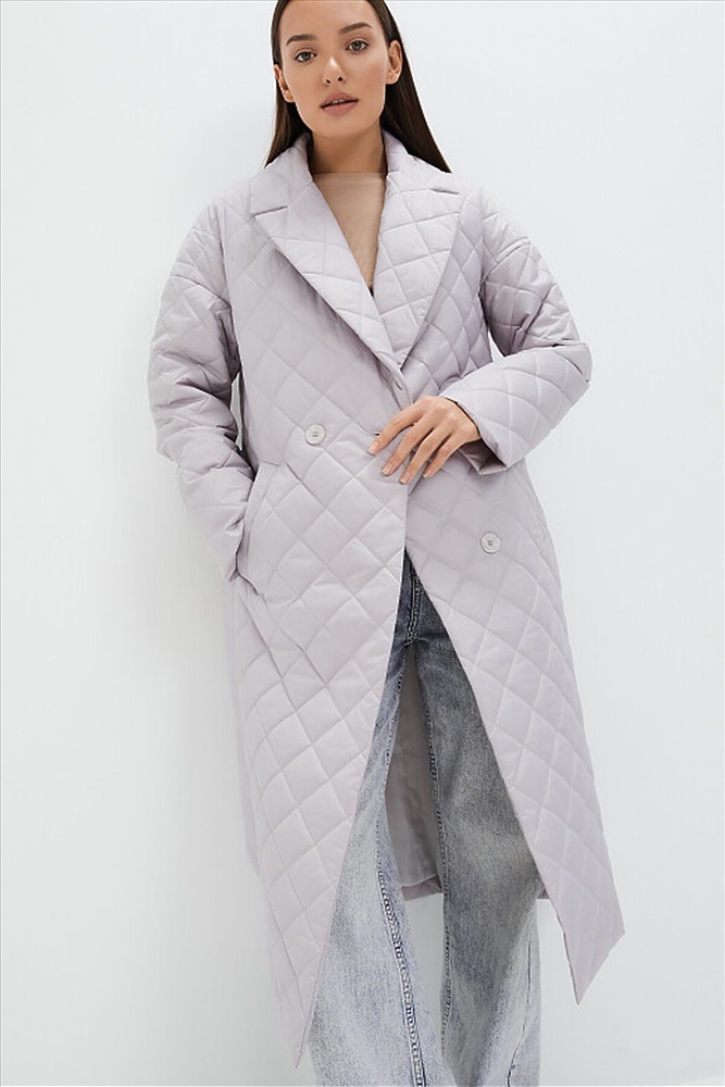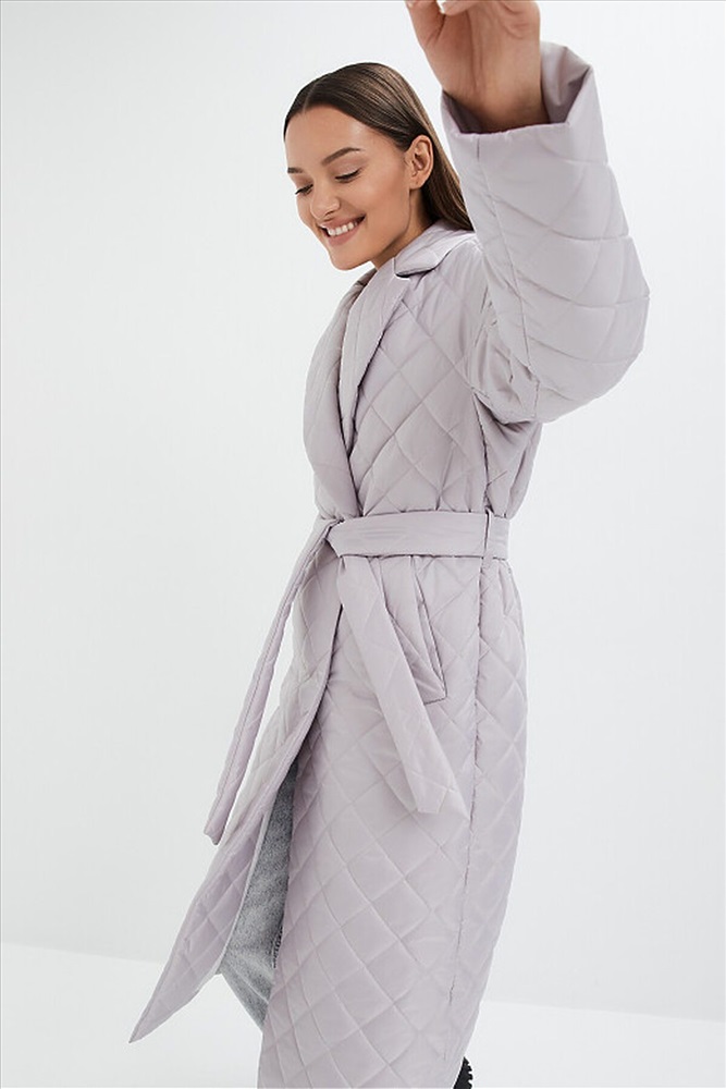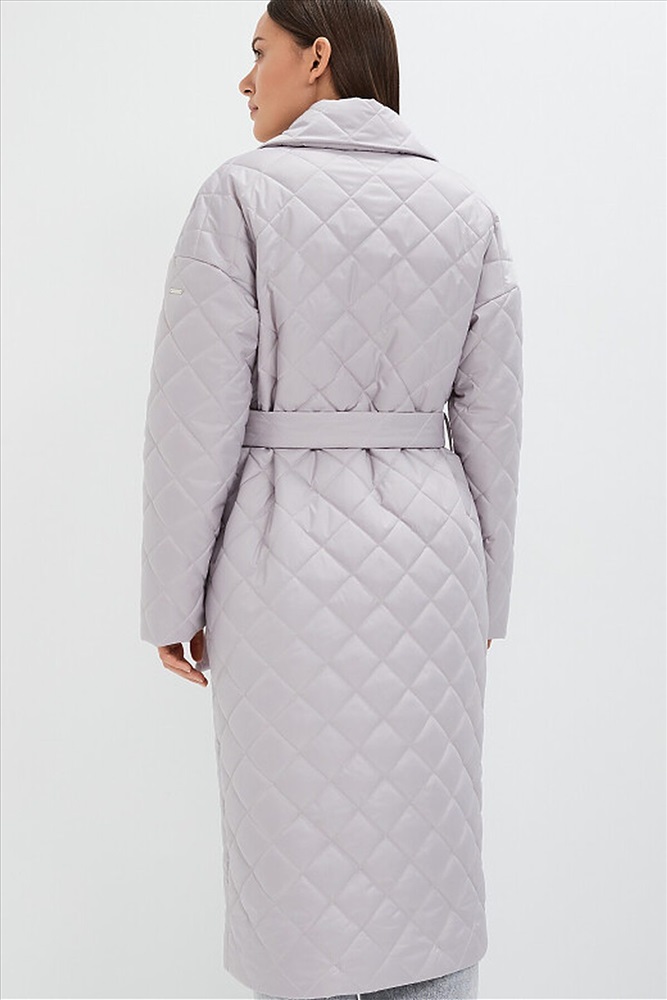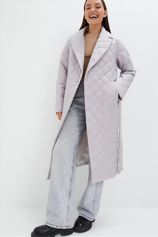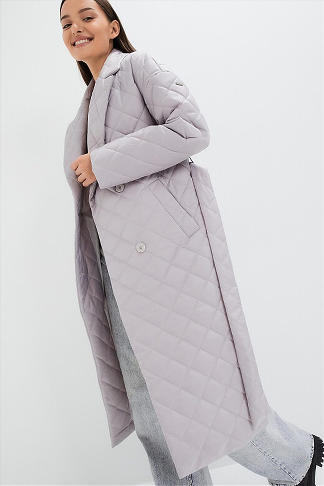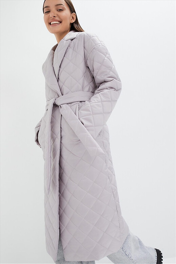 Классический стеганый плащ силуэта "кокон" . Рукав со спущенным плечом. Застежка на пуговицы в цвет изделия. В изделии имеются два функциональных кармана с листочками на и один внутренний карман. В комплекте с изделием идет пояс из основной ткани. Ткань - плащевая с водоотталкивающей пропиткой. Утепление нового поколения ORSOTHERM 100 гр. (от +10°C до +18°C). Длина изделия: 115 см Длина рукава: 64 см.