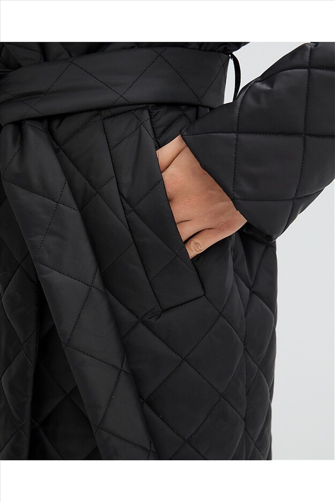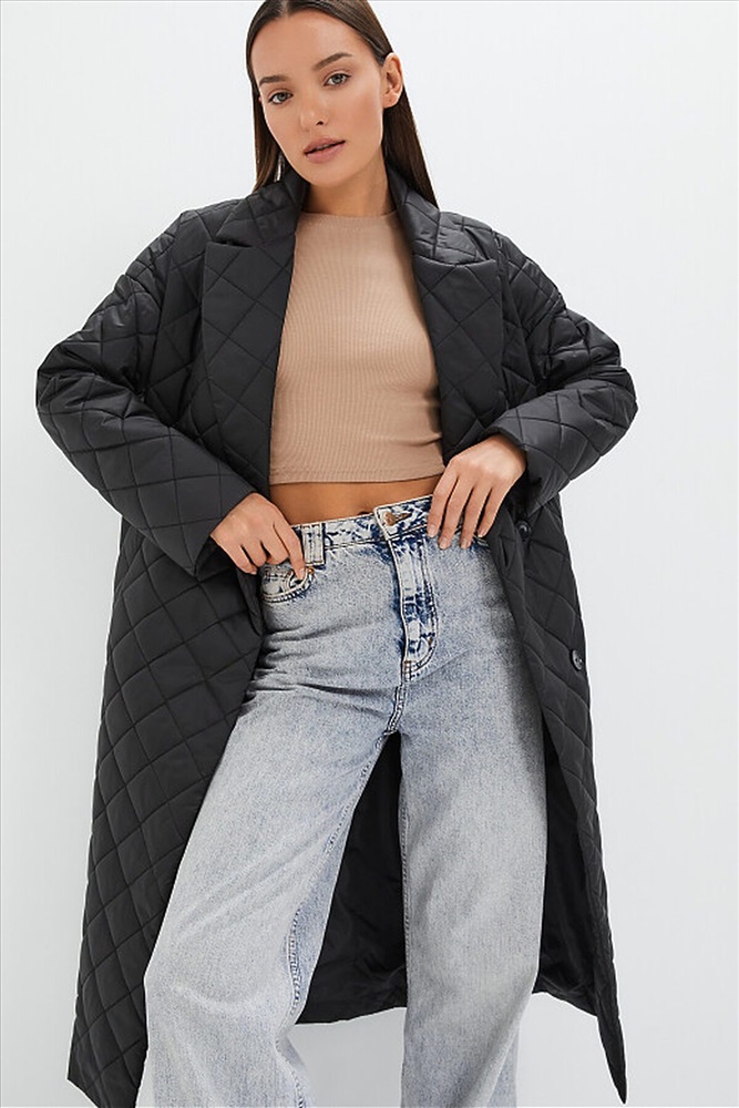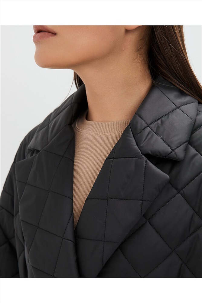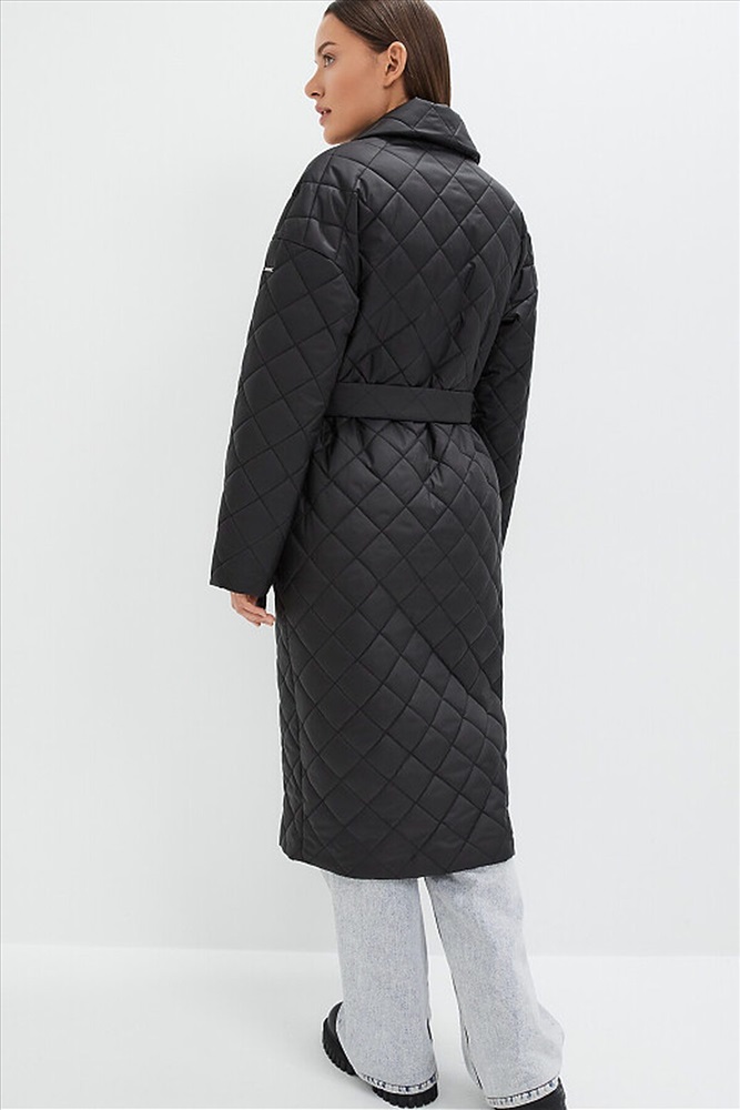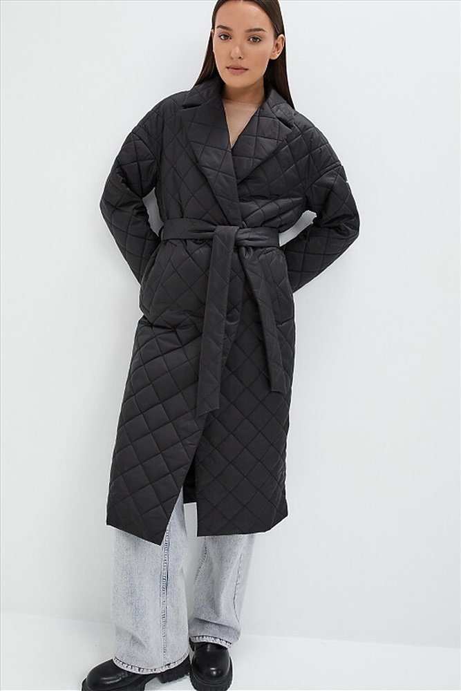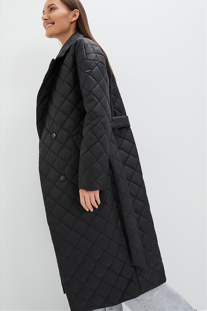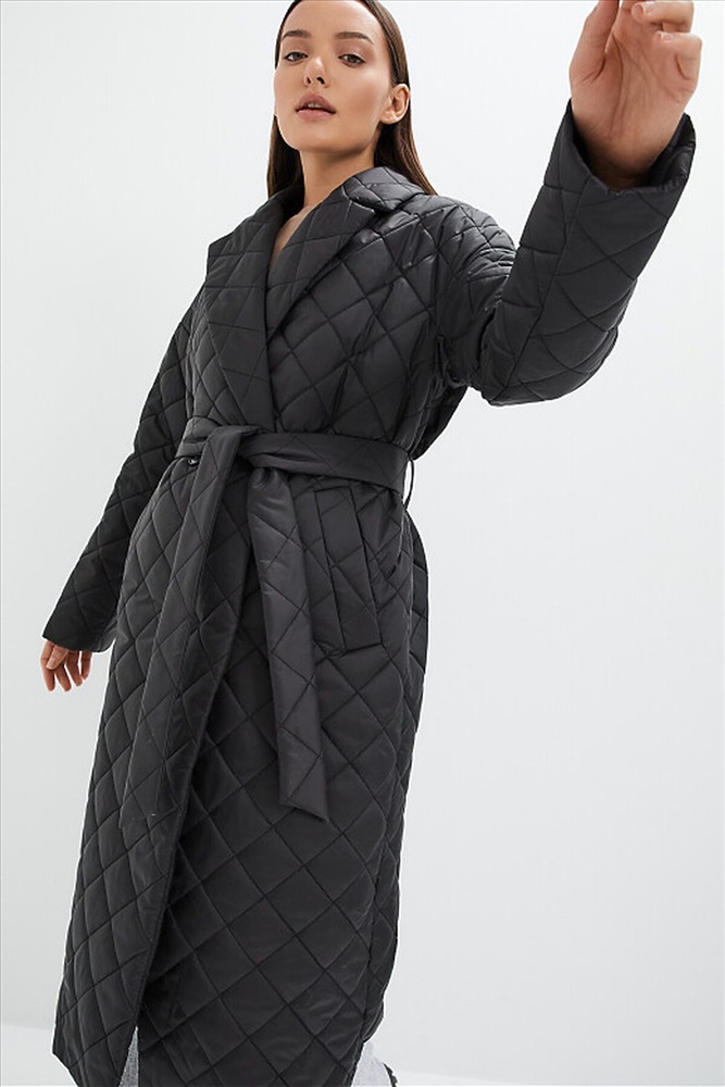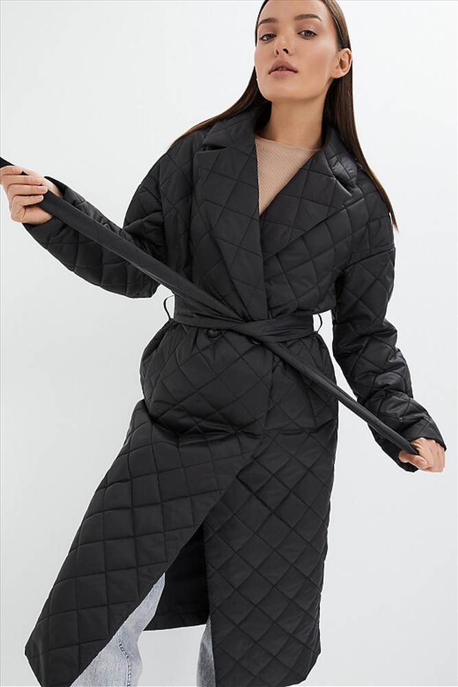 Классический стеганый плащ силуэта "кокон" . Рукав со спущенным плечом. Застежка на пуговицы в цвет изделия. В изделии имеются два функциональных кармана с листочками на и один внутренний карман. В комплекте с изделием идет пояс из основной ткани. Ткань - плащевая с водоотталкивающей пропиткой. Утепление нового поколения ORSOTHERM 100 гр. (от +10°C до +18°C). Длина изделия: 115 см Длина рукава: 64 см.
