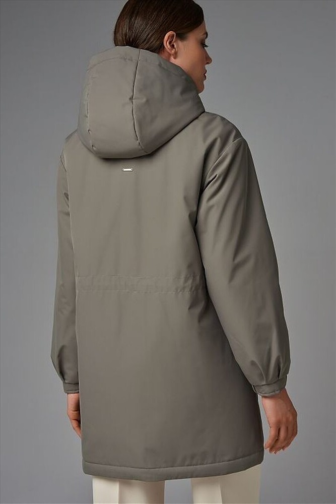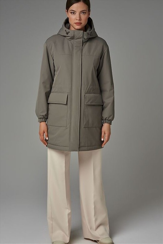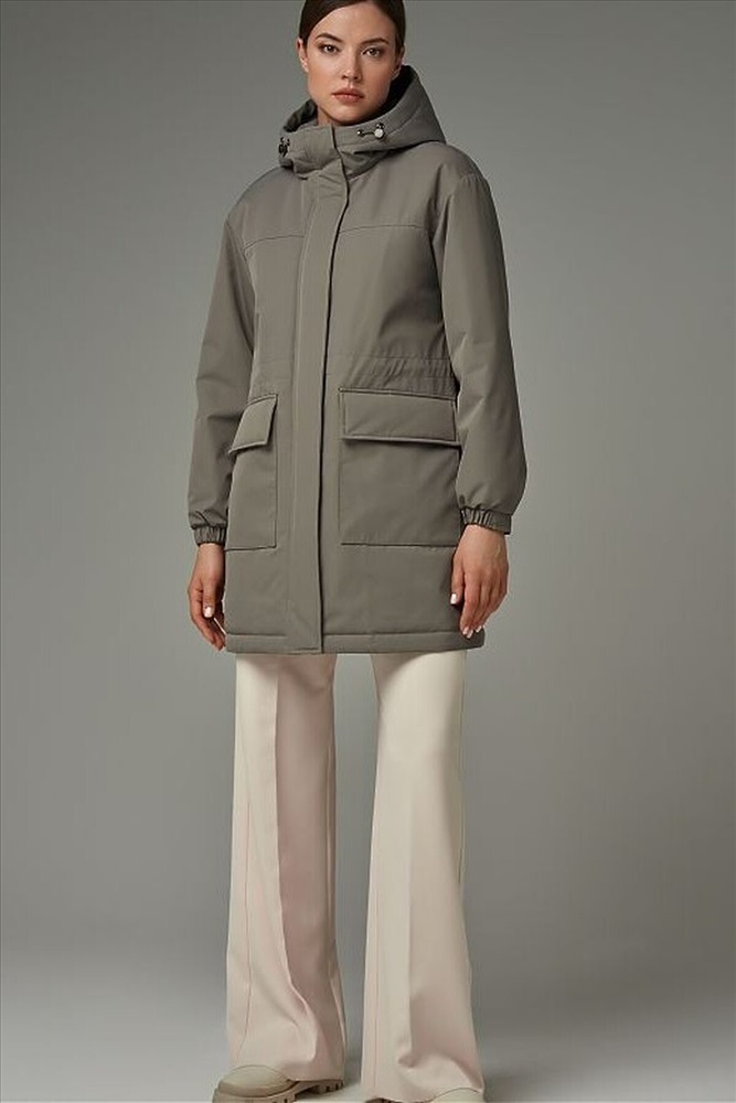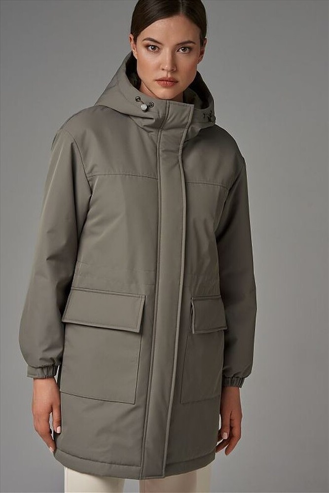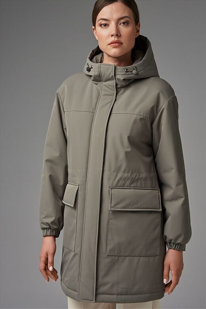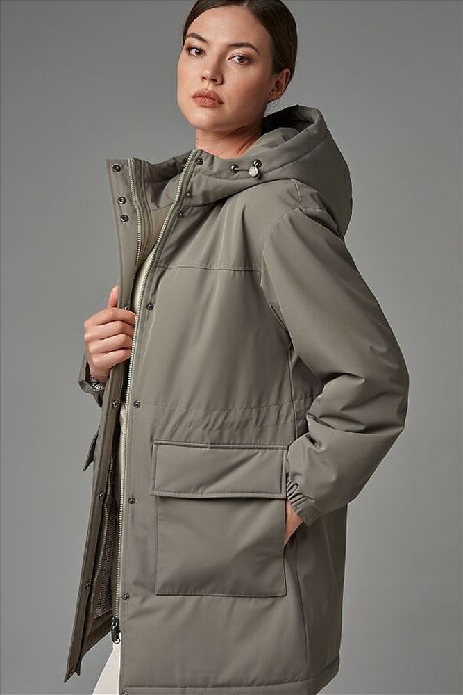 Длина изделия по спинке: 100 см Длина рукава: 64 см Плотность утеплителя: синтепон 100 г/м2 Температурный режим: от +10°C до +18°C Покрой: прямой Тип рукава: спущенное плечо, внизу оформлен резинкой Тип карманов: накладные. Карманы имеют два входа. Состав: 100% полиэстер Материал подкладки: 100% полиэстер Ткань: матовая с мембраной. Размеры: 42-56 Детали: Капюшон не съемный, застежка на молнию в цвет и потайные кнопки.