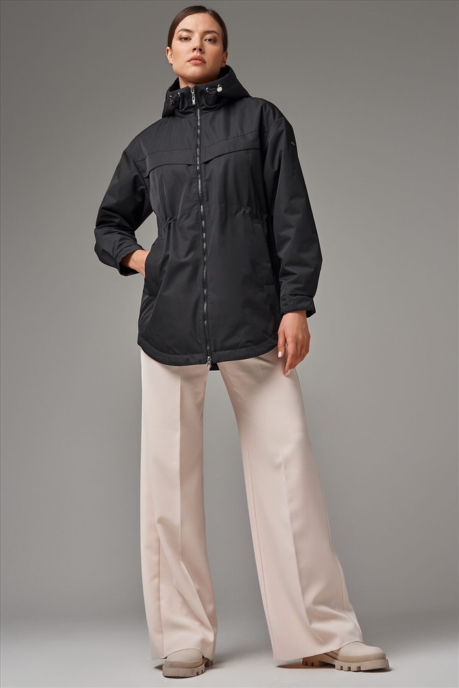 ID товара: 912574 Состав: 100% Полиэстер Сезон: Осень/Зима Длина: 82 см Фасон: Трапеция Рукав: длинные, 64 см Вид застежки: Молния Тип карманов: Накладные Утеплитель: Орсотерм, 60 г/м2 Стиль: Повседневный Реком. темп. режим: до +15ºС Страна бренда: Россия Страна производства: Россия Утепленный плащ а-силуэта с внутренней утяжкой на уровне талии. В модели есть втачной капюшон с утяжкой. Рукав со спущенным плечом. Низ рукава оформлен манжетой. По спинке и полочкам есть декоративные отлетные кокетки. В изделии низ оформлен фестонами. В плаще два функциональных кармана с листочками на потайных кнопках и один внутренний карман. Застежка на молнию. Ткань плащевая с водоотталкивающей пропиткой. Утепление нового поколения ORSOTHERM 60 гр. (от +15°C до +20°C). Длина изделия: 82 см (размеры 42-48), 87 см (размеры 50-56) Длина рукава: 64 см. Размеры: 42-56. Комментарии к товару