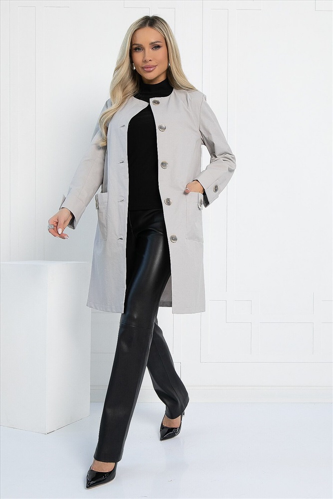 В прохладную погоду этот плащ станет незаменимым элементом вашего гардероба! Стильный и функциональный предмет одежды имеет накладные карманы с патами в виде отделки, закреплены пуговицами, что придаёт ему особый шарм. Для того чтобы подчеркнуть талию, предусмотрен съёмный пояс, который добавляет образу женственности и элегантности.