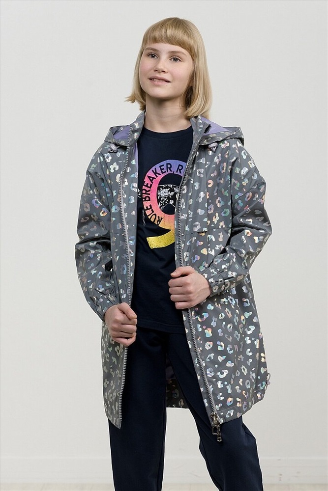 ID товара: 749241 Состав: 100% Полиэстер, Подклад- 100% Полиэстер Сезон: Весна/Лето Длина: Удлиненная Фасон: Прямой Рукав: Длинные Вид застежки: Молния Вырез горловины: Стоечка Рисунок: Фантазийный Тип карманов: Прорезные Основная ткань: Полиэстер Стиль: Повседневный Реком. темп. режим: до +10ºС Страна бренда: Россия Страна производства: Китай Плащ на тонком подкладе. Рекомендуемый температурный режим не ниже плюс 10 градусов. Ткань со световозвращающим покрытием и голограммным серебряным металликом. Водоотталкивающее покрытие. Куртка силуэта бочонок с сильно спущенной линией плеча и объемным рукавом. Карманы прорезные с листочкой. Тракторная молния с серебряным напылением. Стопперы в капюшоне декорированы надписью с серебряным покрытием. Объем по низу изделия регулируется эластиком со стопперами. Комментарии к товару