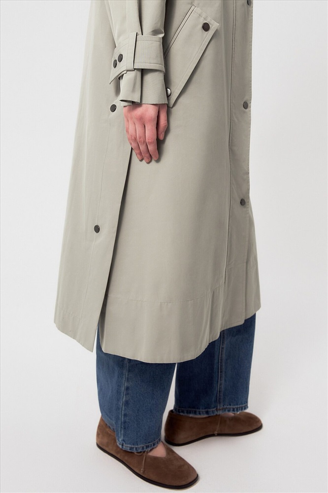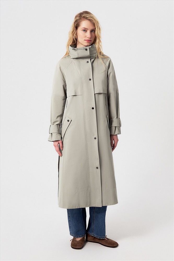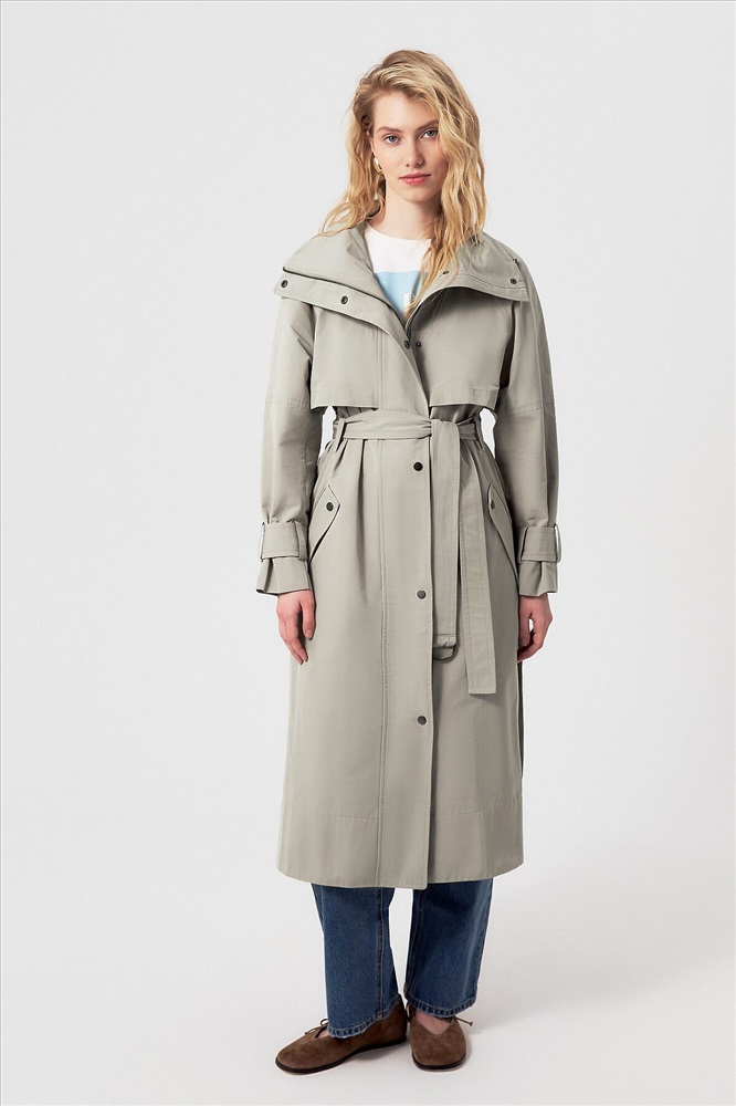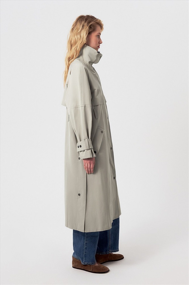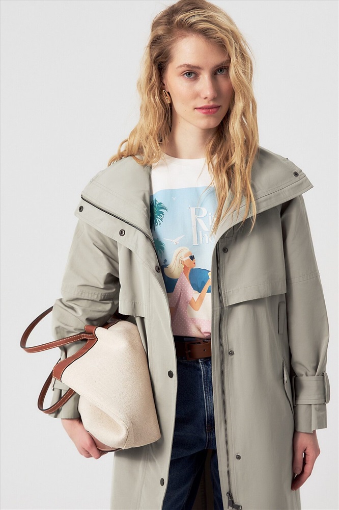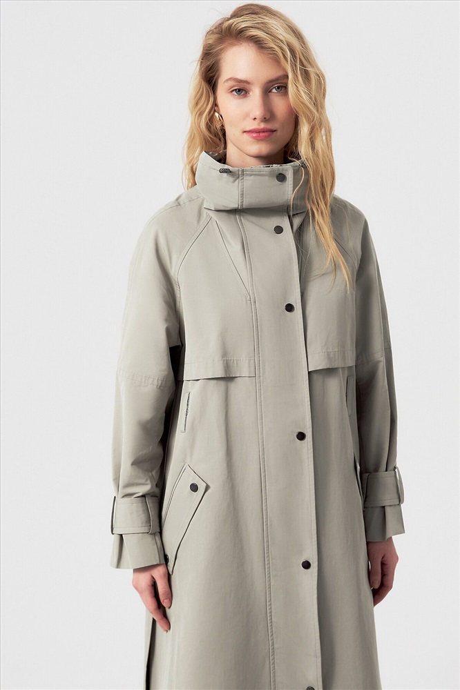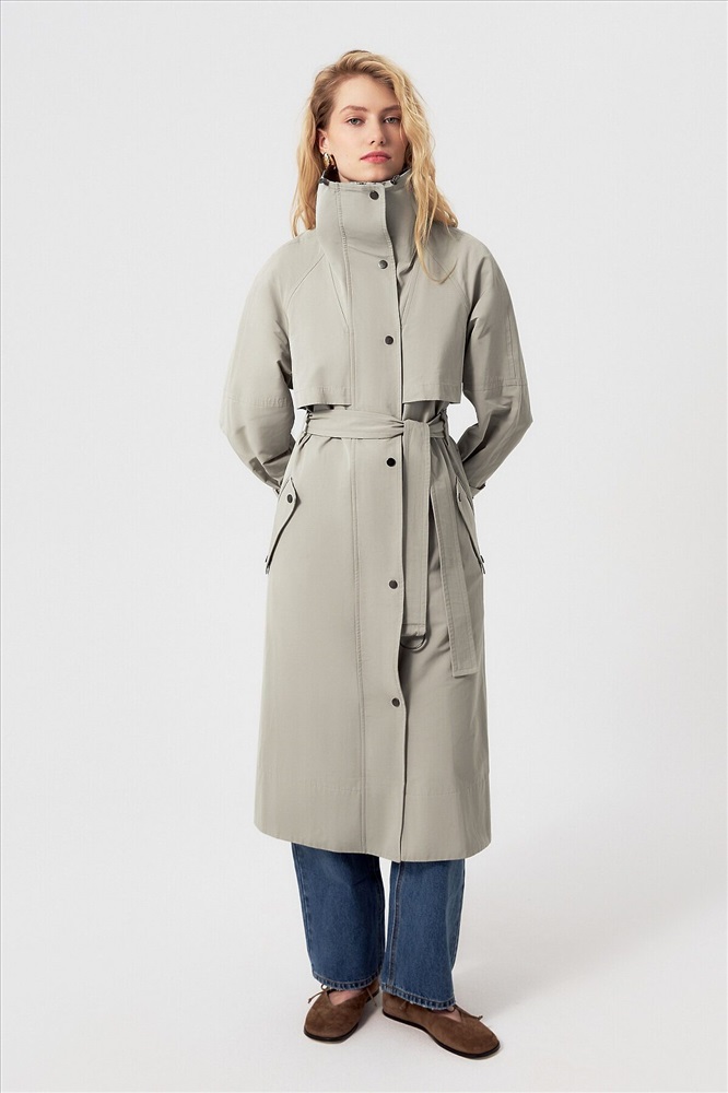 ID товара: 1131391 Состав: Хлопок 55%, Полиэстер 45% Сезон: Демисезон Длина: Удлиненная Фасон: Трапеция Рукав: Длинные Вид застежки: Молния Тип карманов: Прорезные Стиль: классический Страна бренда: Россия Страна производства: Россия Тренч трапециевидного силуэта из плащевой ткани цвета серого пера. Длина тренча ниже колена, по бокам стильные высокие разрезы, дополняющие образ. Высокий воротник-стойка защищает от ветра и выдерживает стилистику ультрамодного тренча. Рукав-реглан делает более мягкую линию плеча и придает дополнительную свободу, что позволяет носить под тренч даже одежду с дополнительным объемом. Два функциональных кармана с листочками очень глубокие и вместительные, а фиксируются на две минималистичные кнопки цвета никель, которые служат дополнительным декором и дополняют стилистику тренча. По переду и спинке декоративная отлетная кокетка, придающая тренчу геометричности. Застегивается тренч на металлическую молнию в цвете "никель" и ряд надежных кнопок. Тренч обработан легкой водоотталкивающей пропиткой, которая защитит от дождя и при этом не сделает ткань тяжелой и жесткой. Комментарии к товару