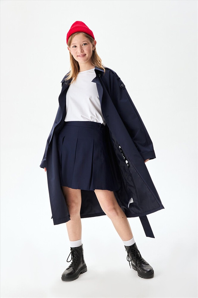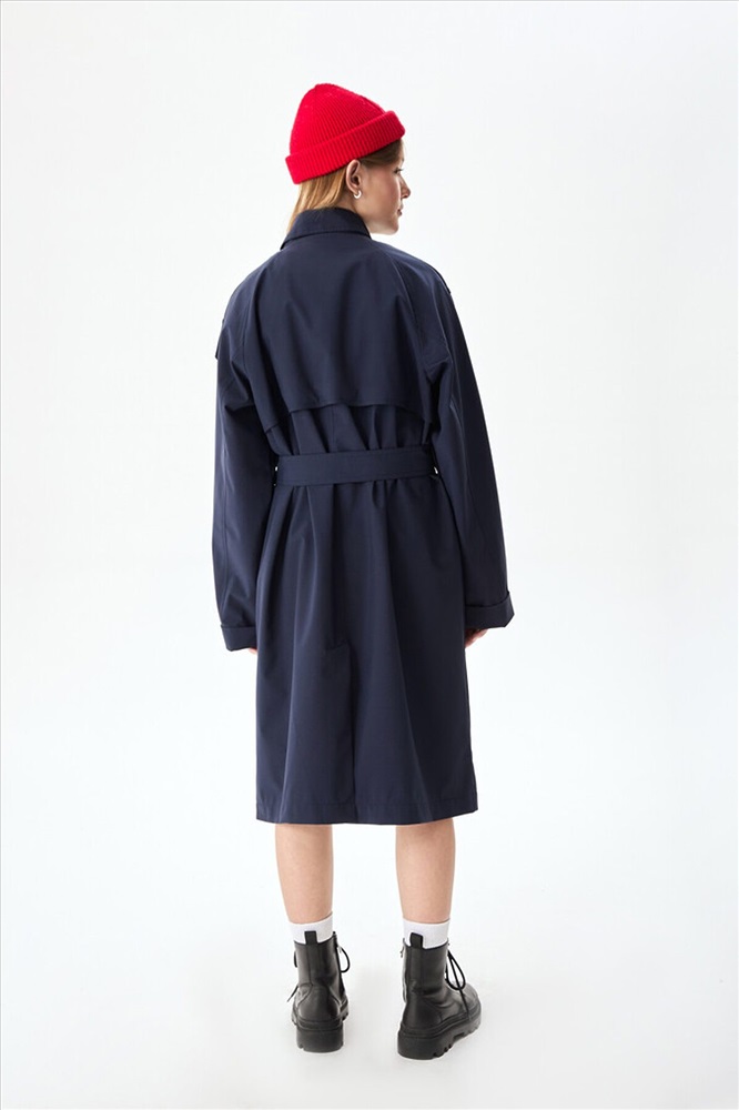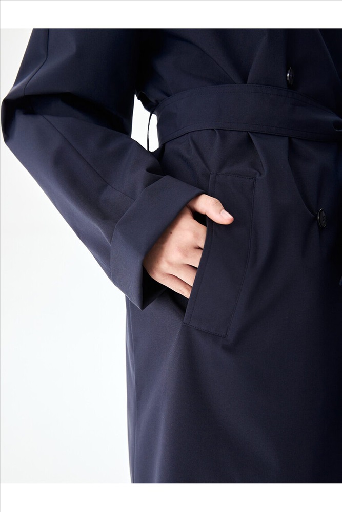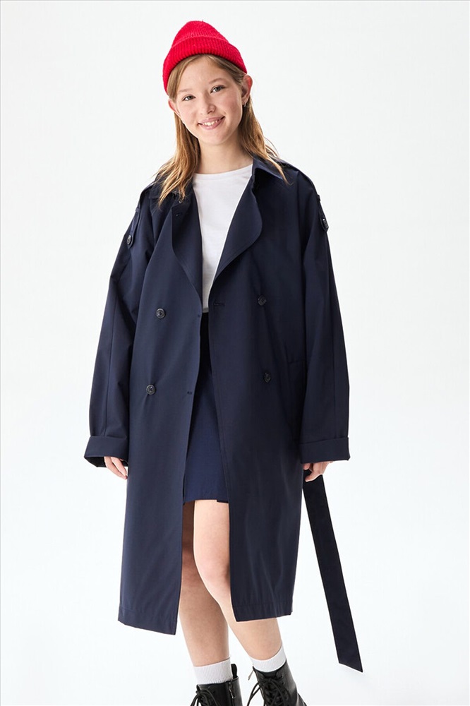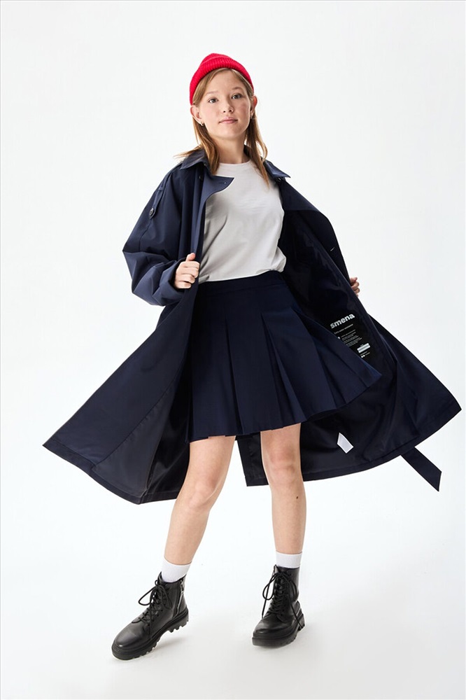 Двубортный плащ из текстильной ткани с поясом и отложным воротником, прямого силуэта. Модель дополнена боковыми карманами и 4 декоративными пуговицами. Плащ легко сочетается с любыми осенними образами. Представлен в 2 цветах.
