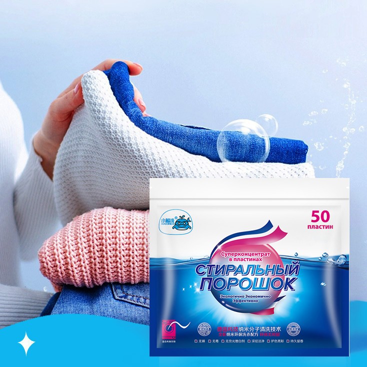 Это средство для стирки представляет собой прямоугольную пластину, пропитанную высококонцентрированным средством. Предназначена для стирки белых и светлых тканей, деликатных тканей, детского белья, компрессионного трикотажа, а также для стирки пуховиков, спортивной одежды, хлопковых, цветных, черных и темных тканей, шерсти и шелка. При использовании средство не просыпается и не требует мерных стаканчиков, благодаря чему НЕ БУДЕТ порошковой пыли и аллергии у потребителя. Очень удобно брать с собой на дачу, в путешествие, в поезд и т.п.