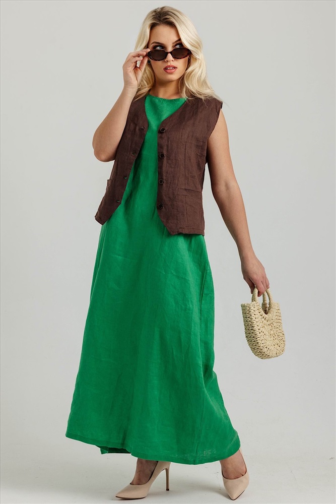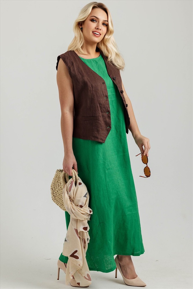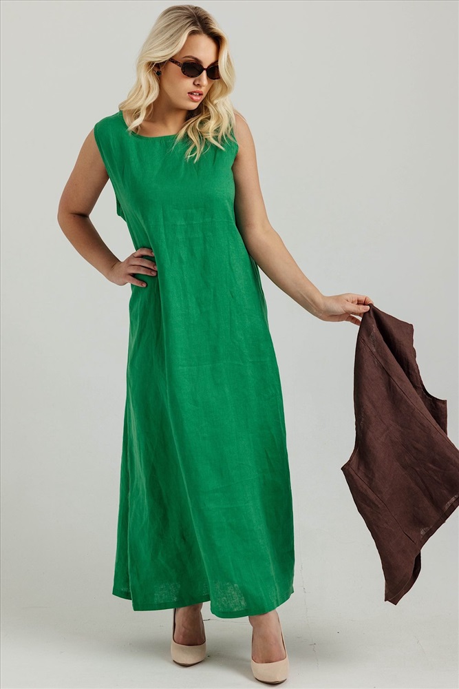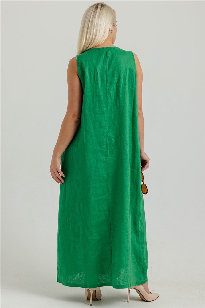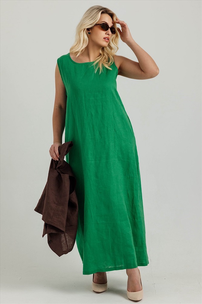 Состав: лен 100% Летнее женское платье  с карманами из 100% льна. Женское платье   – идеальный выбор для  женщин, стремящихся подчеркнуть свою элегантность и стиль в любой ситуации. Это платье прекрасно подходит как для повседневных образов, так и для более торжественных мероприятий: вечеринок, праздников и офисных встреч. Свободный крой не стесняет движений, обеспечивая комфорт на протяжении всего дня.Модель платья- А силуэт, что делает изделие универсальным.