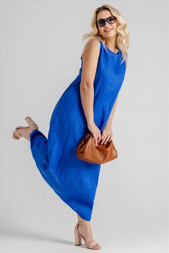 Состав: лен 100% Летнее женское платье  с карманами из 100% льна. Женское платье   – идеальный выбор для  женщин, стремящихся подчеркнуть свою элегантность и стиль в любой ситуации. Это платье прекрасно подходит как для повседневных образов, так и для более торжественных мероприятий: вечеринок, праздников и офисных встреч. Свободный крой не стесняет движений, обеспечивая комфорт на протяжении всего дня.Модель платья- А силуэт, что делает изделие универсальным.