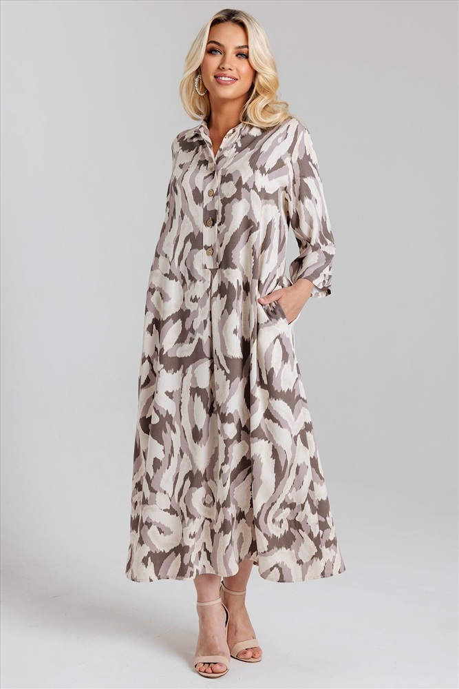 Летнее женское платье из штапеля с карманами. Женское платье из штапеля – идеальный выбор для женщин, стремящихся подчеркнуть свою элегантность и стиль в любой ситуации. Это платье прекрасно подходит как для повседневных образов, так и для более торжественных мероприятий: вечеринок, праздников и офисных встреч. Свободный крой не стесняет движений, обеспечивая комфорт на протяжении всего дня.Модель платья- А силуэт, что делает изделие универсальным. Отложной воротничок и планка с пуговицами придаёт платью классический вид, удлиненные рукава, которые фиксируются патами, добавляют интересный акцент и позволяют регулировать длину рукава по вашему желанию. Встречная складка под планкой спереди и на спинке придает свободу движения при этом сохраняют утонченный силуэт.