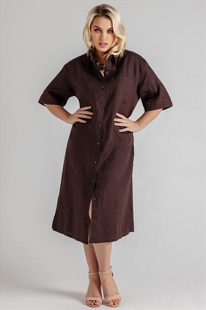 Состав: лен 100% Летнее женское платье-рубашка  с карманами из 100% льна. Женское платье   – идеальный выбор для  женщин, стремящихся подчеркнуть свою элегантность и стиль в любой ситуации. Это платье прекрасно подходит как для повседневных образов, так и для более торжественных мероприятий: вечеринок, праздников и офисных встреч. Свободный крой не стесняет движений, обеспечивая комфорт на протяжении всего дня.Модель платья- А силуэт, что делает изделие универсальным.