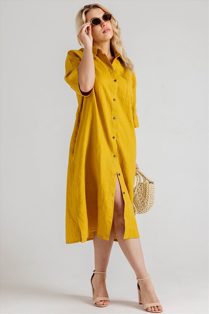 Состав: лен 100% Летнее женское платье-рубашка  с карманами из 100% льна. Женское платье   – идеальный выбор для  женщин, стремящихся подчеркнуть свою элегантность и стиль в любой ситуации. Это платье прекрасно подходит как для повседневных образов, так и для более торжественных мероприятий: вечеринок, праздников и офисных встреч. Свободный крой не стесняет движений, обеспечивая комфорт на протяжении всего дня.Модель платья- А силуэт, что делает изделие универсальным.
