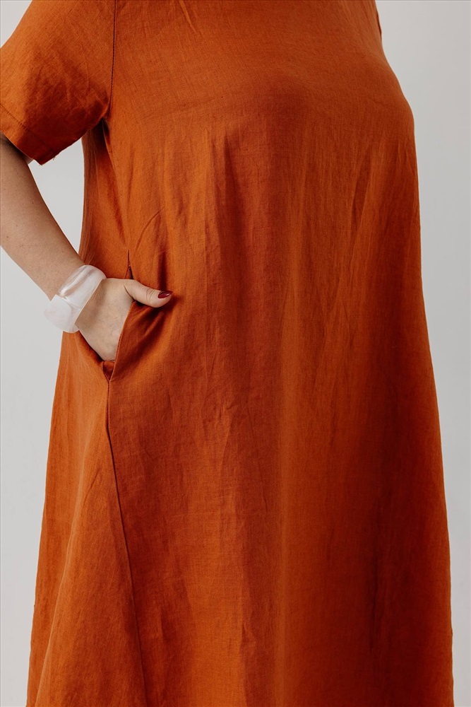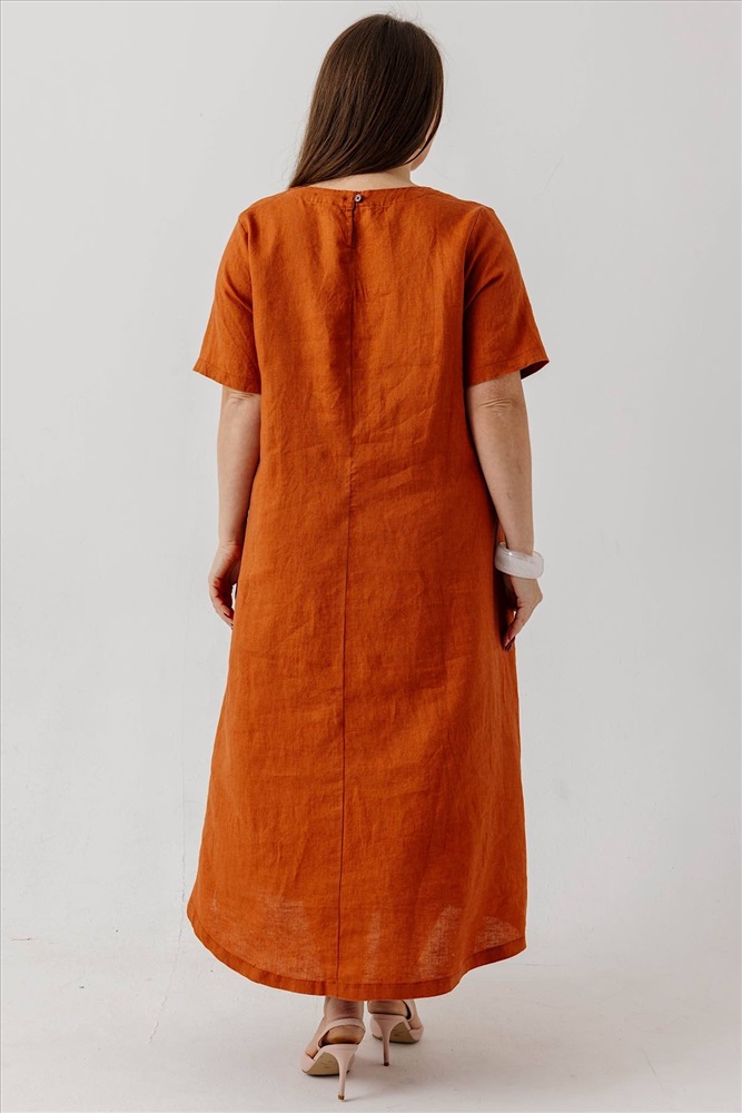 Летнее женское платье с карманами из 100% льна. Женское платье – идеальный выбор для женщин, стремящихся подчеркнуть свою элегантность и стиль в любой ситуации. Это платье прекрасно подходит как для повседневных образов, так и для более торжественных мероприятий: вечеринок, праздников и офисных встреч. Свободный крой не стесняет движений, обеспечивая комфорт на протяжении всего дня.Модель платья- А силуэт, что делает изделие универсальным.