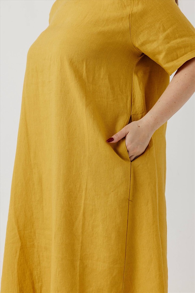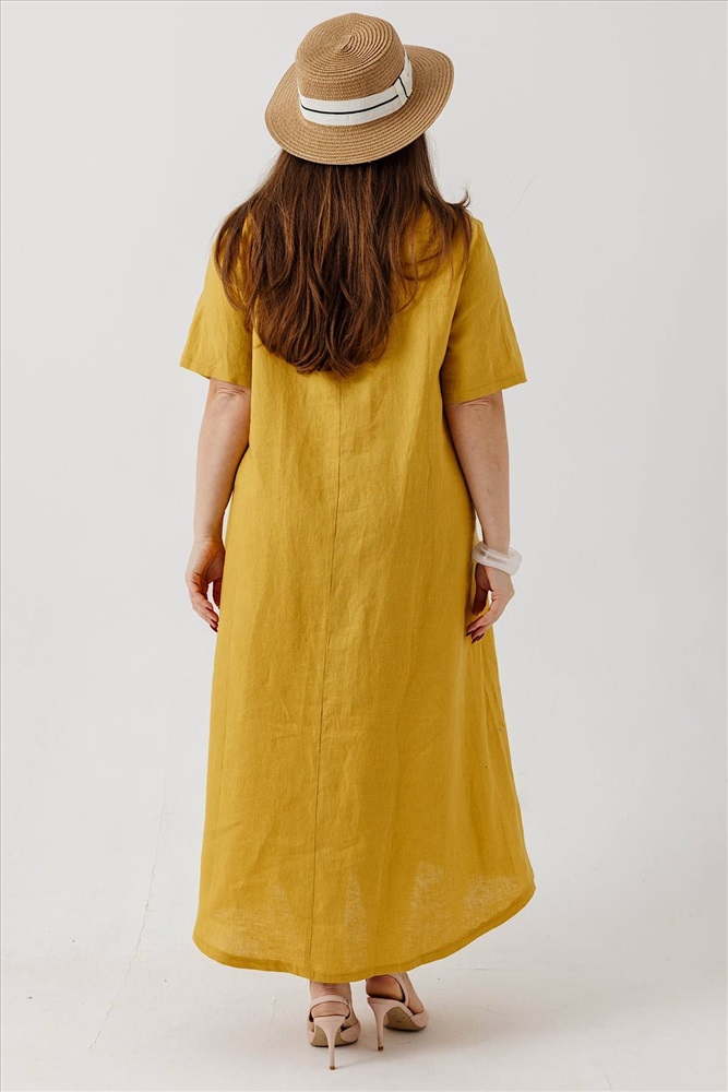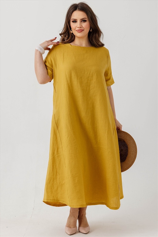 Состав: лен 100% Летнее женское платье  с карманами из 100% льна. Женское платье   – идеальный выбор для  женщин, стремящихся подчеркнуть свою элегантность и стиль в любой ситуации. Это платье прекрасно подходит как для повседневных образов, так и для более торжественных мероприятий: вечеринок, праздников и офисных встреч. Свободный крой не стесняет движений, обеспечивая комфорт на протяжении всего дня.Модель платья- А силуэт, что делает изделие универсальным.