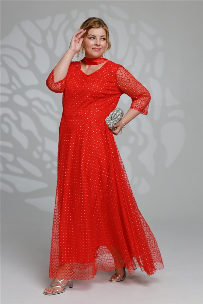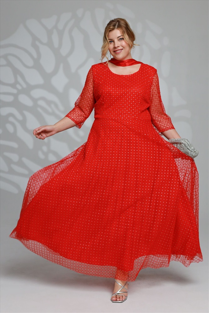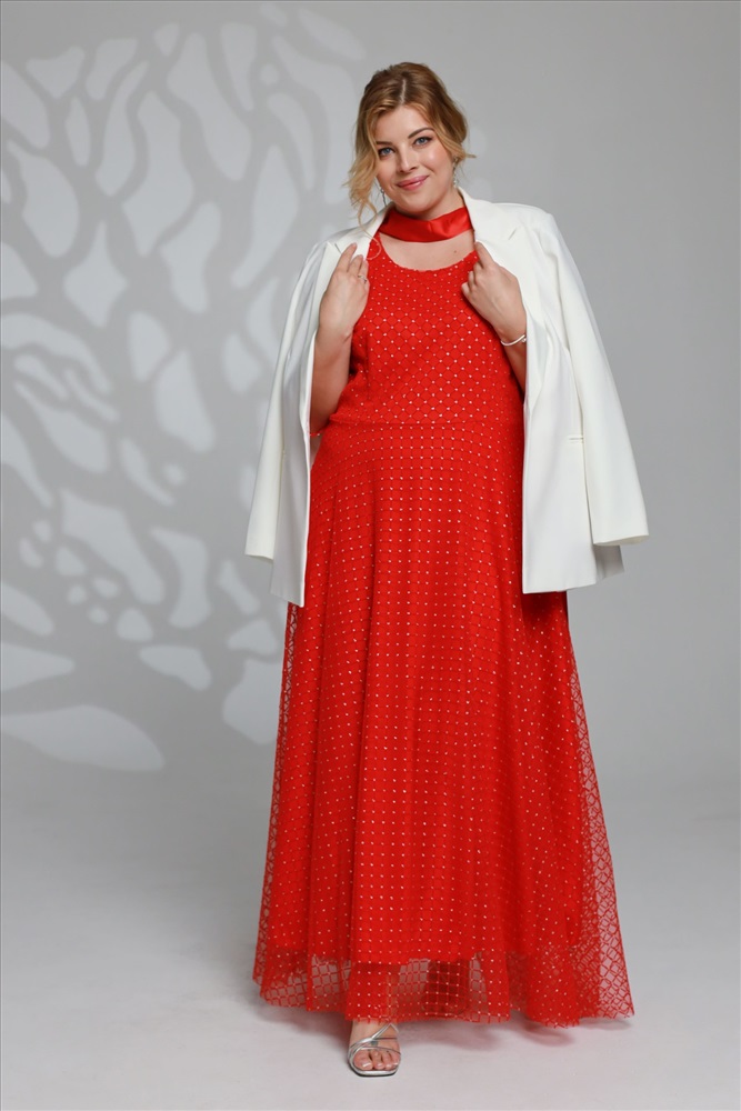 Платье длинное круглый вырез "ромбики" двойное красное