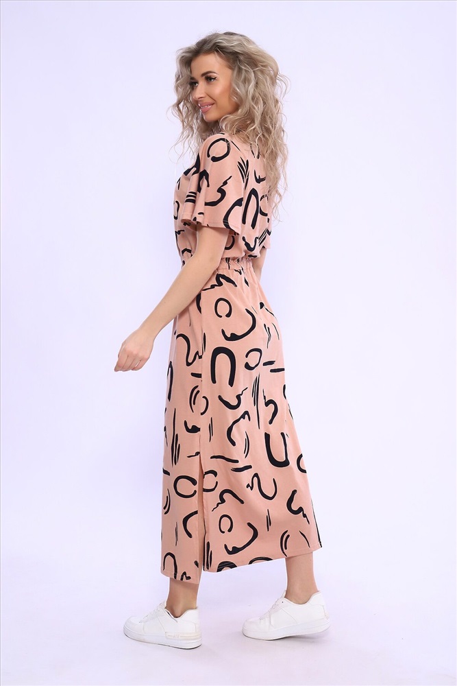 Платье на кулиске с резинкой и короткими расклешенными рукавами. В боковых швах разрезы. Комфортно для повседневной носки.