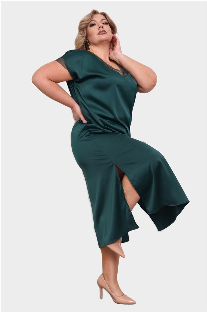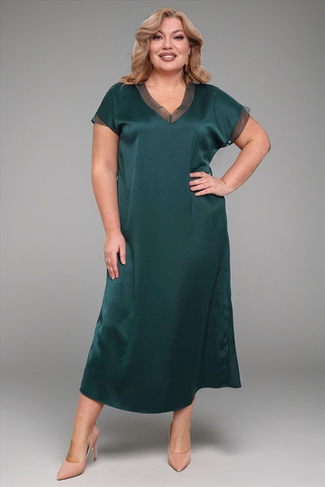 Цвет: Зеленый Фасон: Платье Длина платья: Французская длина Материал: Искуcственный шелк Длина рукава: Короткий рукав Параметры модели: Рост 173 см, Размер 54 Платье шелковое V-вырез с прозрачной отделкой изумруд Платье выполнено из нежной, струящейся, приятно прилегающей к телу ткани. Изящный V-вырез добавляет женственности. Короткие цельнокроеные рукава и вырез на груди декорированы фатиновой оборкой, что добавляет воздушности. Прямой крой стройнит, скрывая недостатки фигуры, а небольшие разрезы по бокам способствуют оптимальной посадке по фигуре. Материал держит форму, не вытягивается, а шелковая фактура ткани выглядит достойно и дорого в любой ситуации. Платье подойдет для офисного стиля с базовым пиджаком и обувью на высоких каблуках, а если добавить пояс и кеды - идеальный вариант для свиданий и прогулки теплыми летними вечерами готов. Модель отлично сочетается с любыми вещами в гардеробе, а значит это незаменимый помощник выглядеть каждый день по-новому. Состав: 71%-вискоза; 27%-полиэстер; 2%-эластан.
