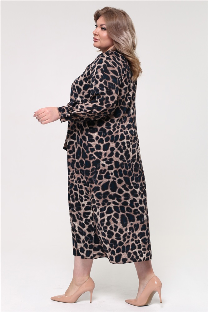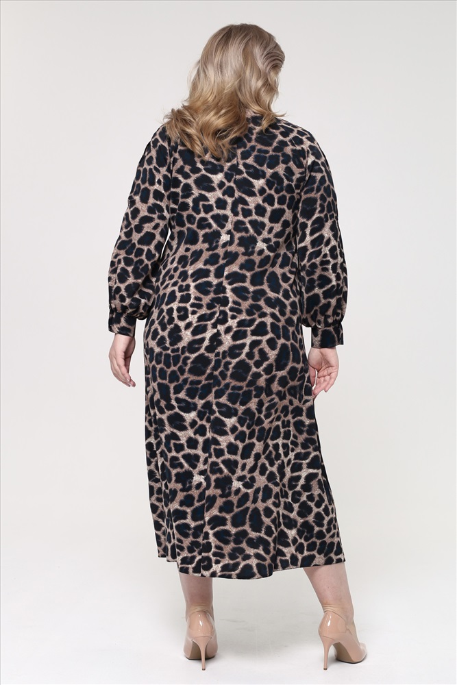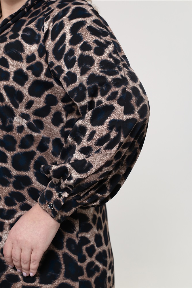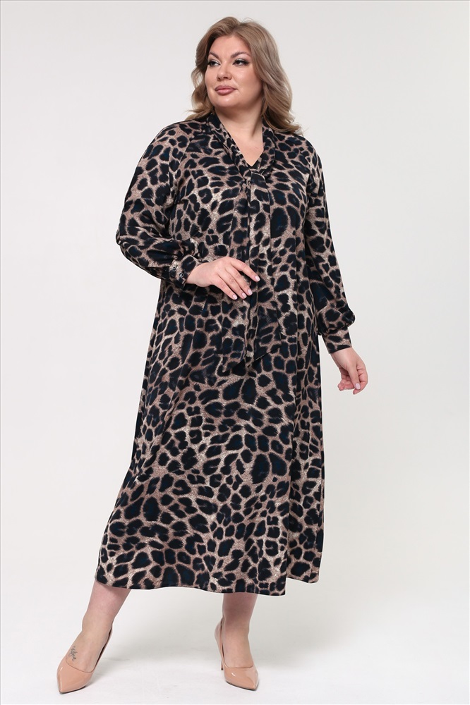 Платье V-вырез с завязкой на вороте леопард коричневое