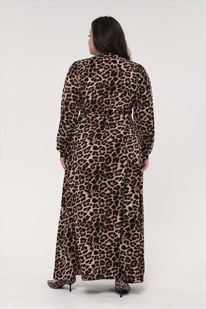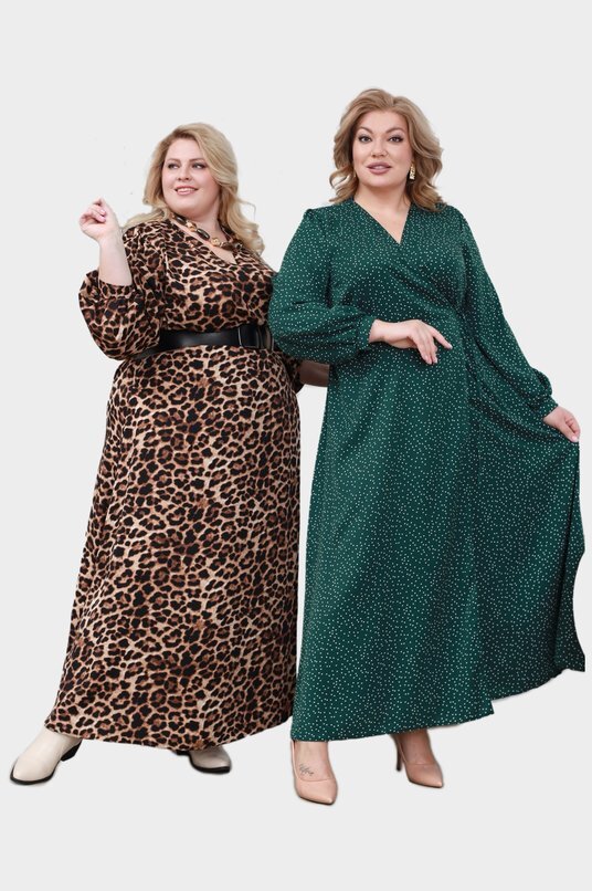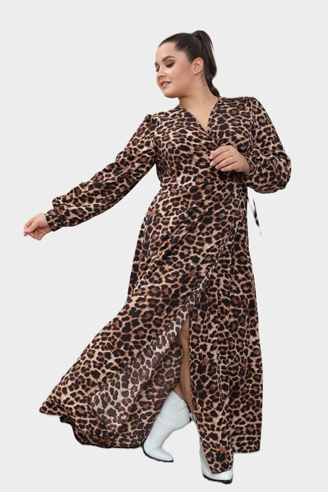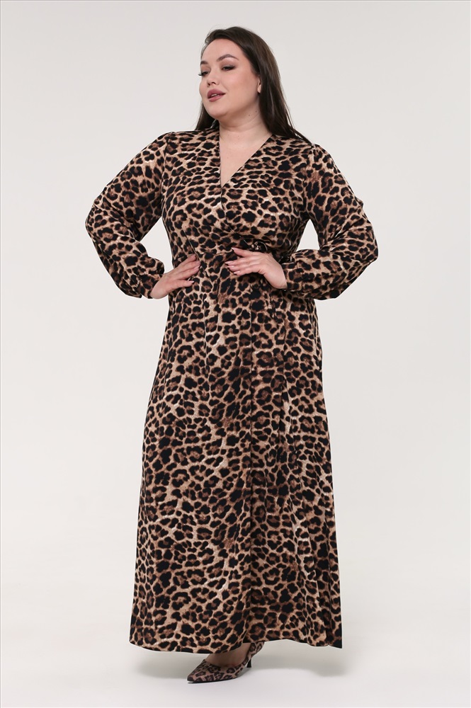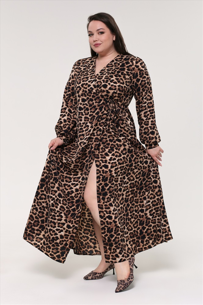 Платье "леопард" длинное с запАхом с длинным рукавом бежевое