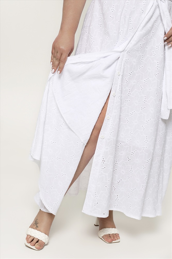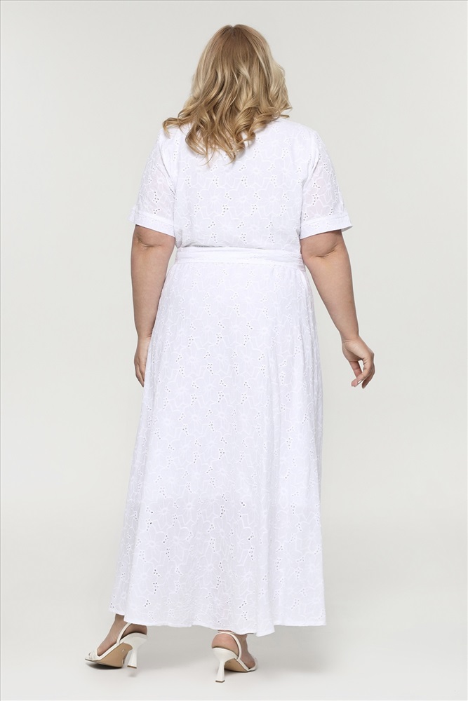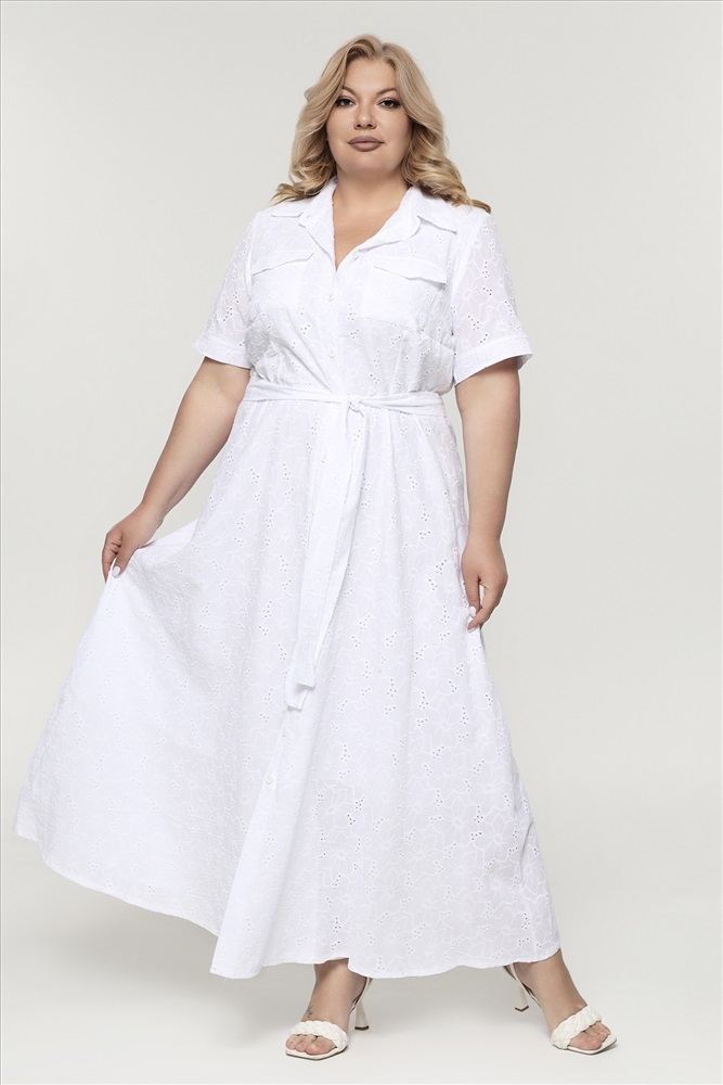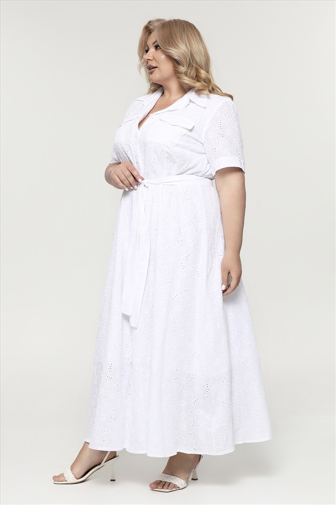 Платье хлопок на пуговках с выбитым рисунком длинное белое