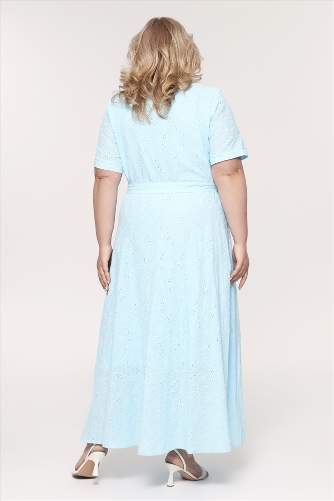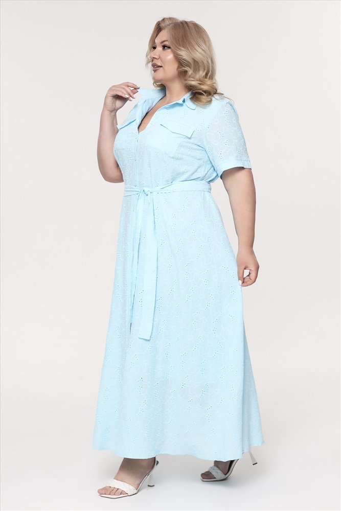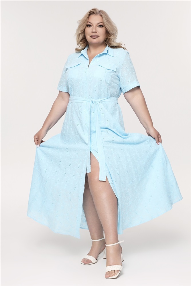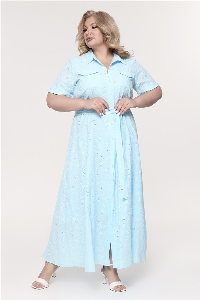 Платье хлопок на пуговках с выбитым рисунком длинное голубое