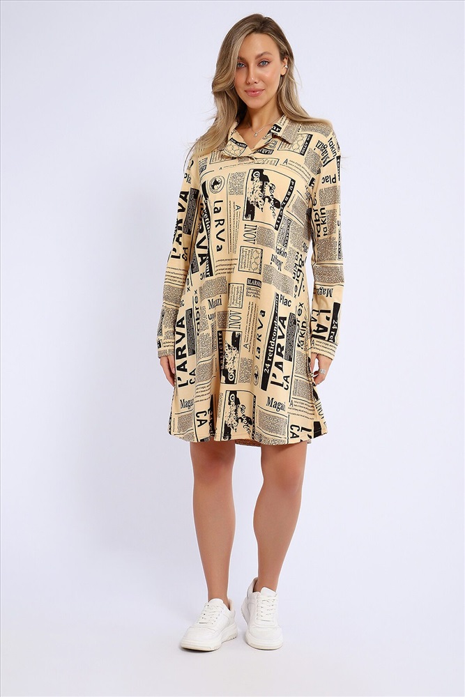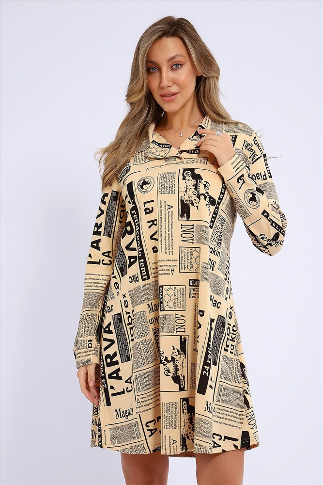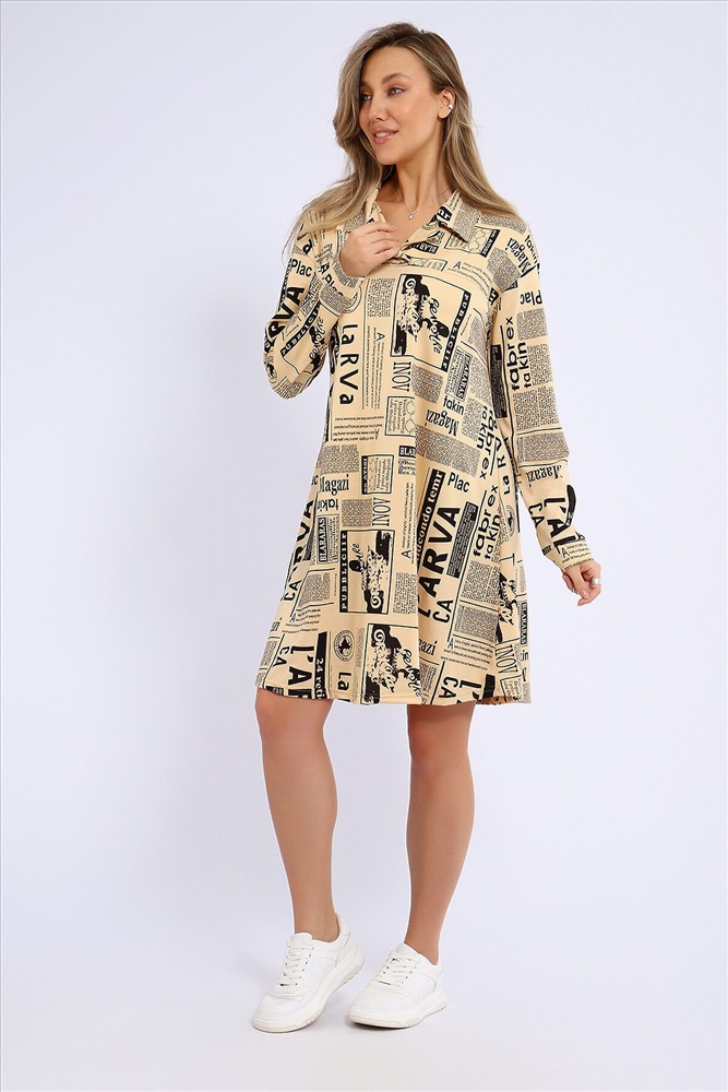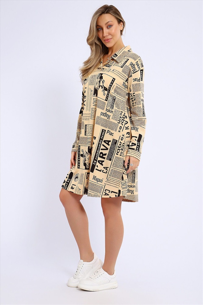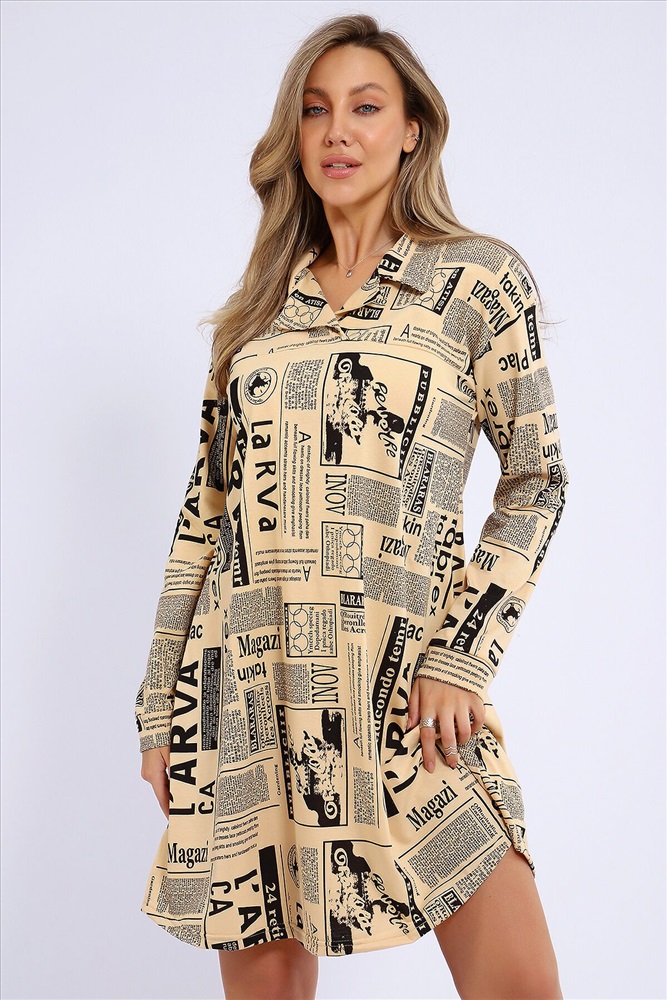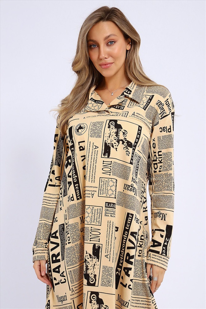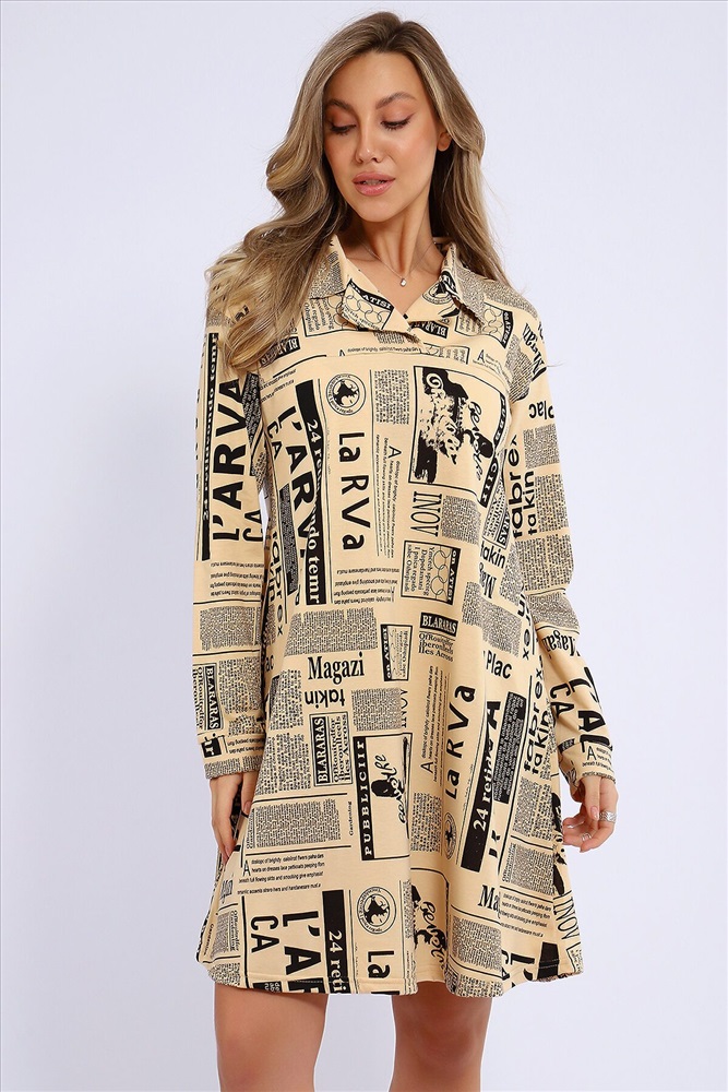 Производитель: НАТАЛИ ID товара: 1126817 Состав: 100% Хлопок Сезон: Весна/Лето Длина: До колена Фасон: Свободный Рукав: Длинные Вырез горловины: Отложной воротничок Рисунок: газетный Декоративные элементы: Принт Основная ткань: Хлопок Стиль: повседневный Вид ткани: Кулирка Страна бренда: Россия Страна производства: Россия