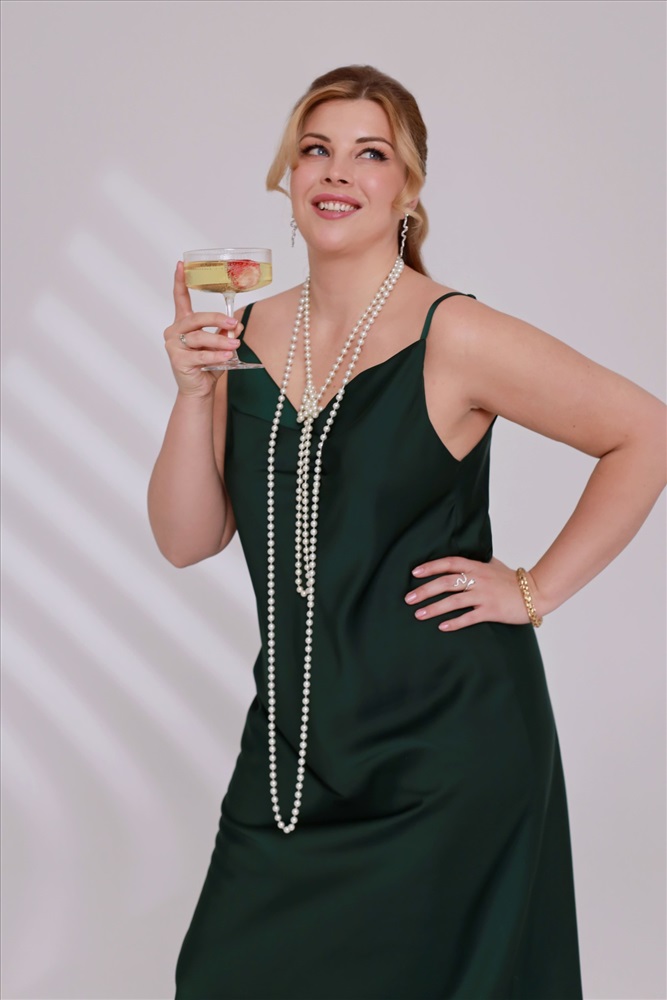 Платье-комбинация изумруд