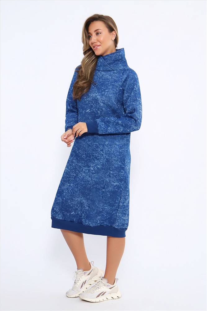 Теплое женское платье в спортивном стиле выполнено из футера пенье с начесом, прекрасный вариант для вечерних прогулок. Спортивное платье с начесом идеально на холодное время года. Крой платья женского обеспечит идеальную посадку по фигуре, платье по рукавам и низу изделия отделано эластичными манжетами. В боковых швах трикотажного женского платья глубокие карманы. Повседневное платье в стиле спорт шик - это красивая комфортная и теплая женская одежда на каждый день.