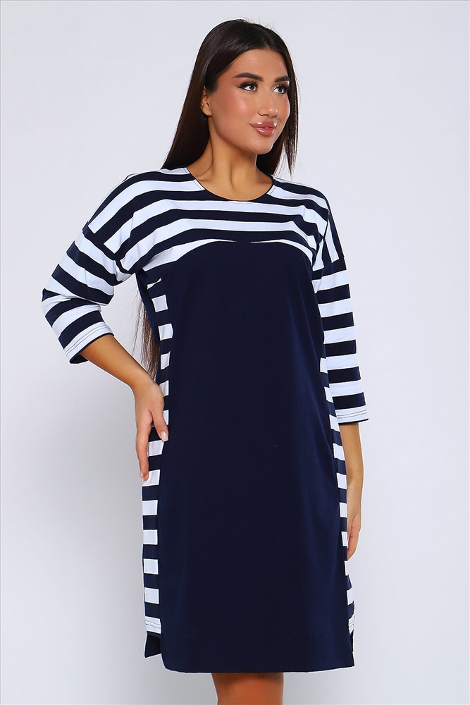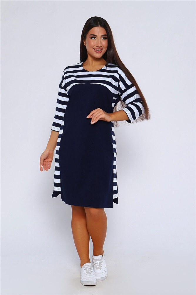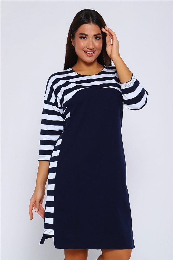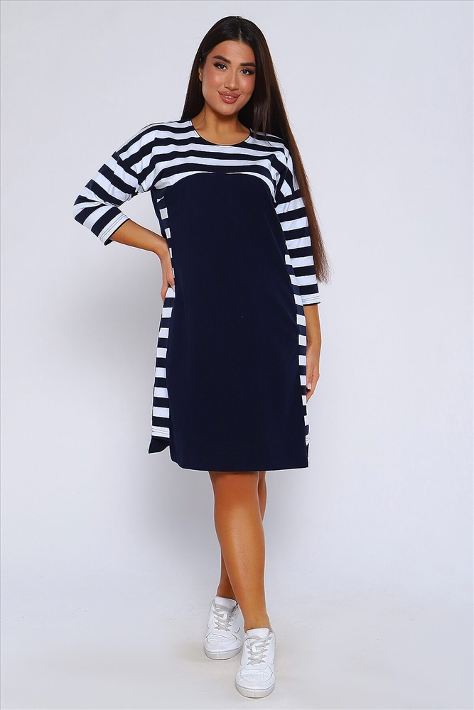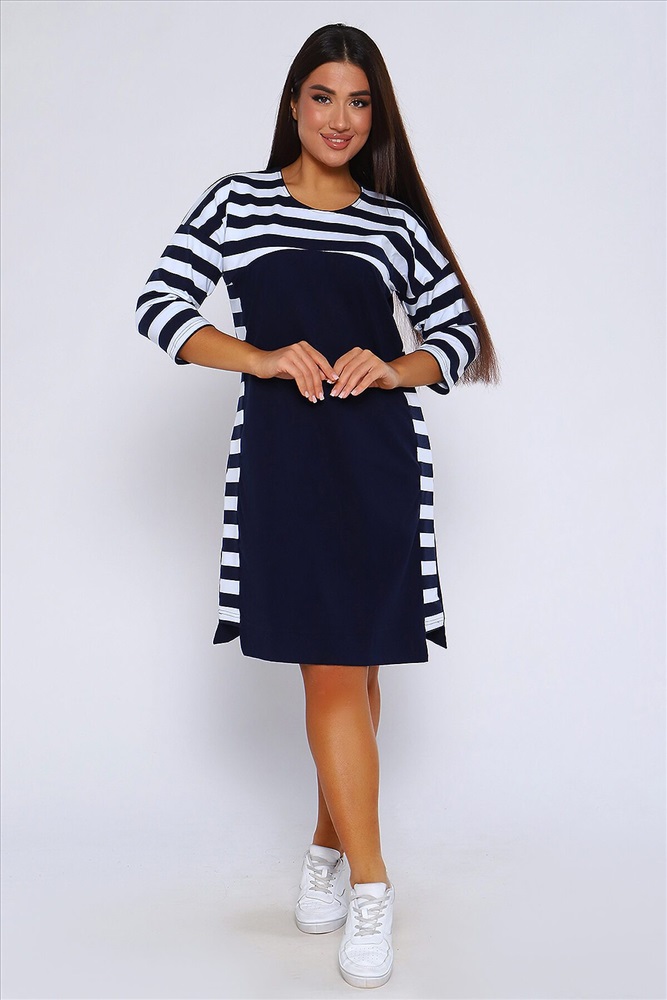 ID товара: 955556 Состав: 95% Хлопок 5% Лайкра Сезон: Демисезон Длина: Миди Фасон: Прямое Рукав: 3/4 Вырез горловины: Округлый Основная ткань: Хлопок Стиль: Повседневный Вид ткани: Кулирка с лайкрой пенье Страна бренда: Россия Страна производства: Россия Женское Платье свободного покроя со спущенной проймой, рукав 3/4 и круглым вырезом. По бокам комбинированные вставки. Хлопок в составе (95%) гарантирует мягкость и приятные тактильные ощущения. Лайкра (5%) добавляет эластичности и позволяет платью хорошо сидеть на фигуре. Это легкий и мягкий дышащий трикотаж, который не садится при стирке и не вытягивается в процессе носки. Платье идеально подходит для непревзойденного образа. И хорошо смотрится на разных типах женской фигуры, для женщин всех возрастов. Платье имеет прямой свободный крой с приталенной посадкой, который подарит Вам полную свободу движений и комфорт! Комментарии к товару