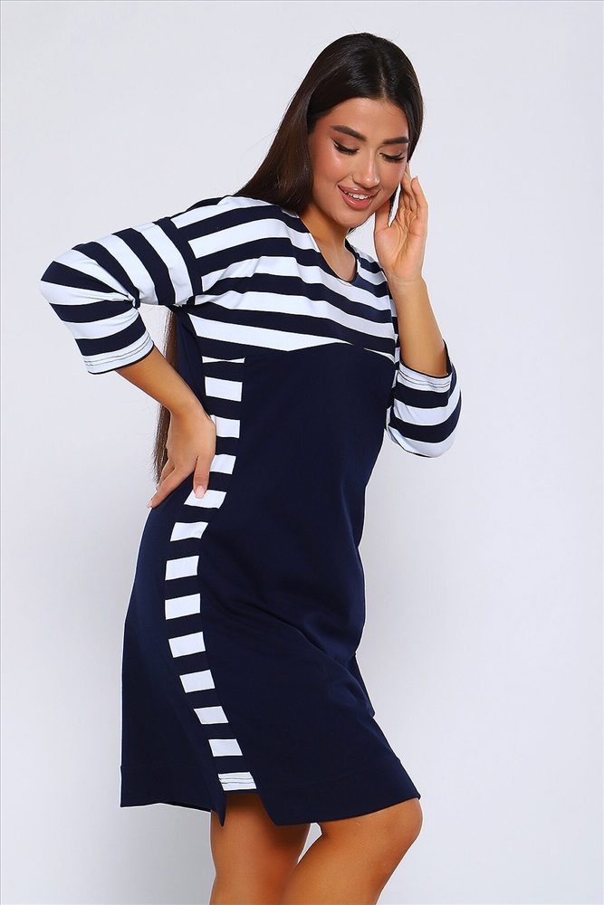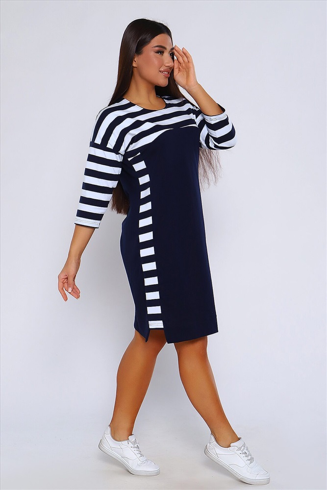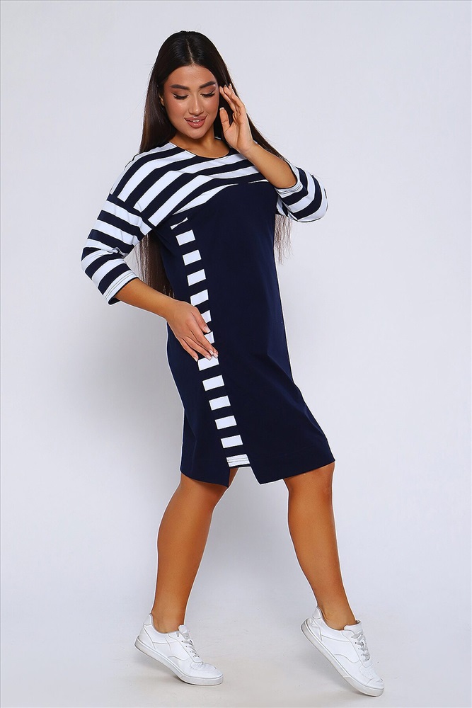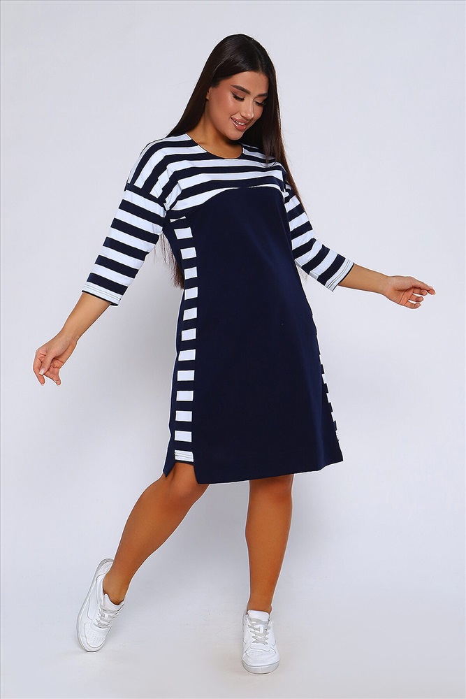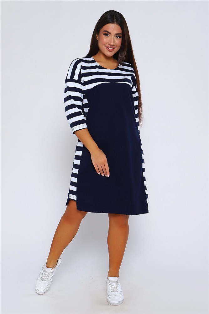 ID товара: 955556 Состав: 95% Хлопок 5% Лайкра Сезон: Демисезон Длина: Миди Фасон: Прямое Рукав: 3/4 Вырез горловины: Округлый Основная ткань: Хлопок Стиль: Повседневный Вид ткани: Кулирка с лайкрой пенье Страна бренда: Россия Страна производства: Россия Женское Платье свободного покроя со спущенной проймой, рукав 3/4 и круглым вырезом. По бокам комбинированные вставки. Хлопок в составе (95%) гарантирует мягкость и приятные тактильные ощущения. Лайкра (5%) добавляет эластичности и позволяет платью хорошо сидеть на фигуре. Это легкий и мягкий дышащий трикотаж, который не садится при стирке и не вытягивается в процессе носки. Платье идеально подходит для непревзойденного образа. И хорошо смотрится на разных типах женской фигуры, для женщин всех возрастов. Платье имеет прямой свободный крой с приталенной посадкой, который подарит Вам полную свободу движений и комфорт! Комментарии к товару