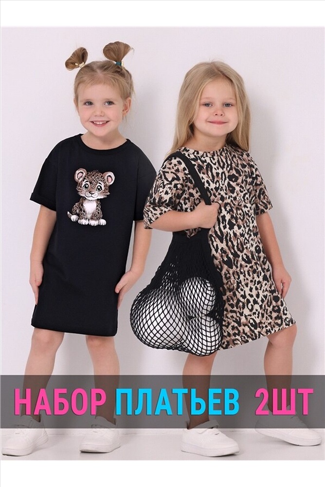 Комплект из двух платье прямого кроя с короткими рукавами. Тип полотна - кулир