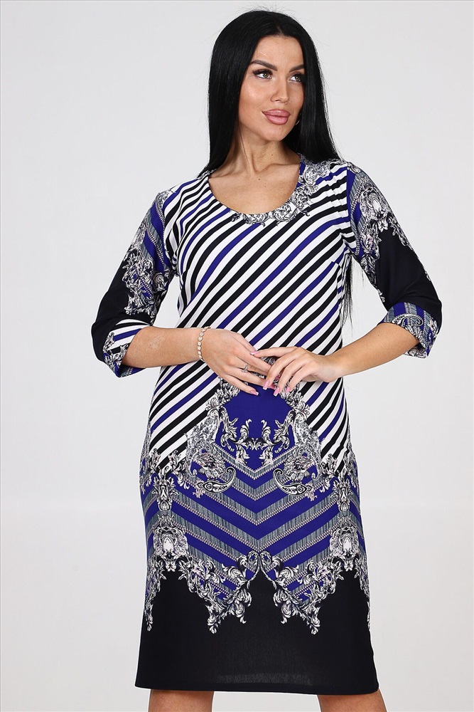 Страна производства: Россия Женское платье прямого силуэта с оригинальным рисунком - идеальный выбор для стильных и модных женщин. Это платье обладает настолько уникальным дизайном, что вы будете непременно выделяться из толпы.К каждой детали этого платья было уделено особое внимание. На полочке и спинке присутствуют вытачки, которые придают этому изделию особую форму и подчеркивают прекрасные линии вашего тела. Рукава длиной три черверти создают элегантный и изысканный образ, при этом сохраняя комфорт и свободу движений.Горловина округлая - всегда актуальная и универсальная, она подходит как для повседневных образов, так и для особых событий. Она помогает подчеркнуть вашу красоту и шею, делая образ еще более женственным.Это платье изготовлено из высококачественной ткани, что гарантирует его долговечность и удобство. Вы не будете испытывать никаких неудобств, нося это платье, оно также легко сочетается с другими элементами вашего гардероба.Женское платье прямого силуэта с оригинальным рисунком, вытачками, трехчетвертными рукавами и округлой горловиной - это платье, которое подчеркнет вашу индивидуальность, стиль и внутреннюю красоту. Покупая его, вы делаете правильный выбор и будете наслаждаться его прекрасным видом и качеством на протяжении долгого времени.